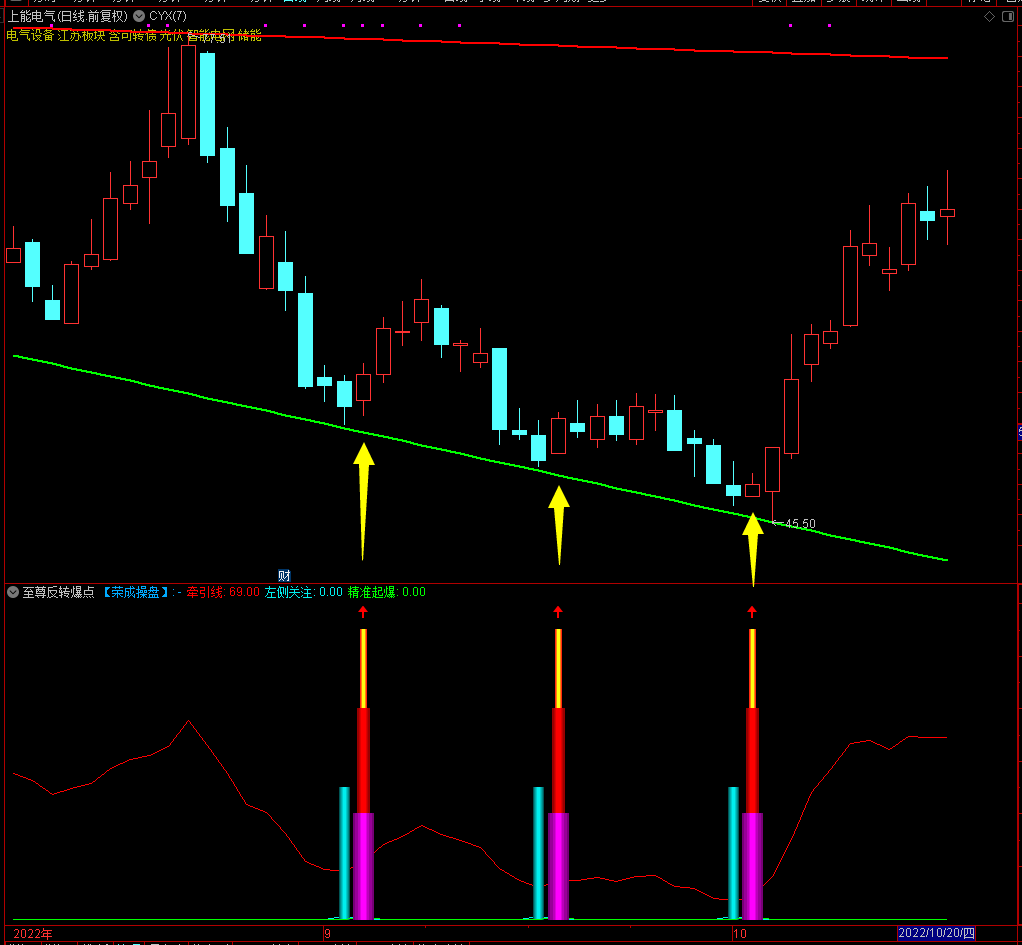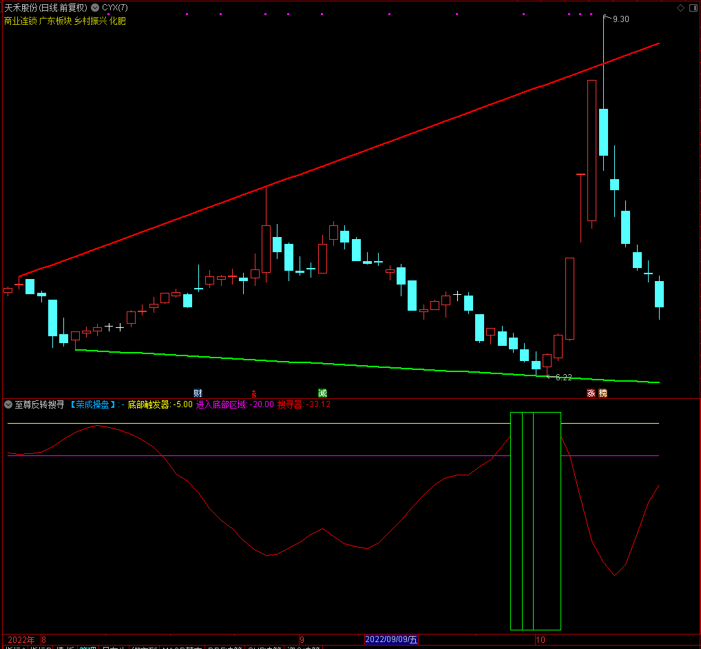 反转搜寻:反转区域提示,能够很好的提示股价即将出现转折拐点区域