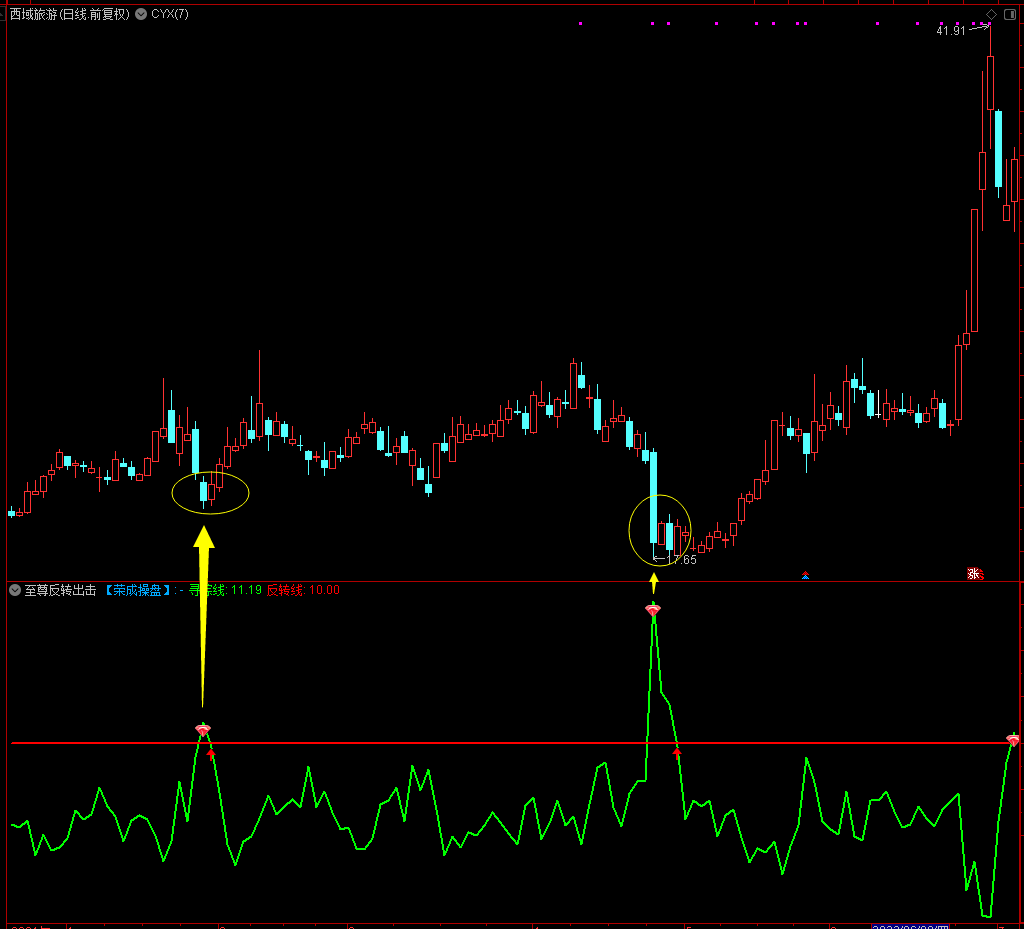 反转出击:精准出击股价运行的反转低点,钻石为超跌预警,箭头为反转出击信号