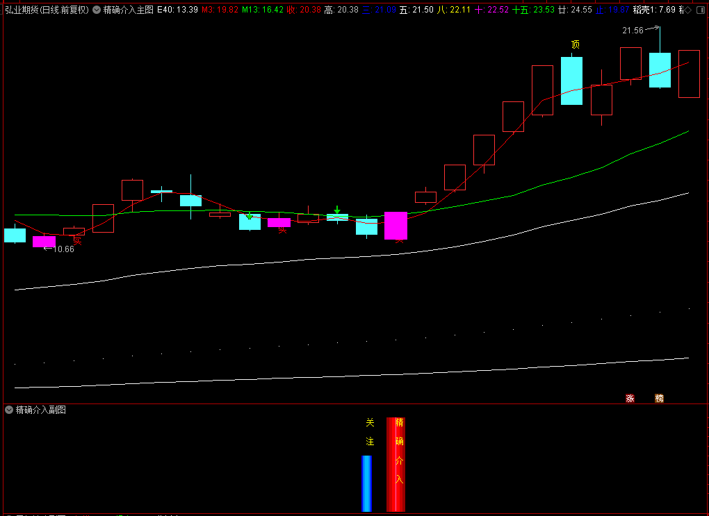 精确介入指标包含一个主图指标、一个副图指标和一个选股指标,全部指标无未来函数,无加密,放心使用。