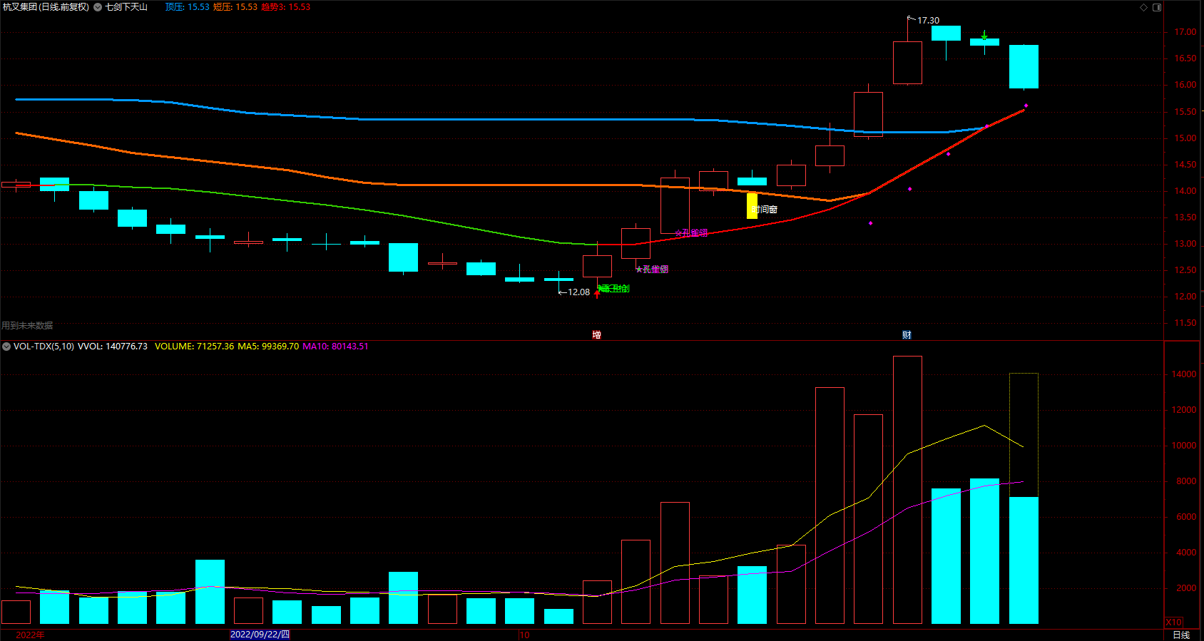 短压:HHV(MA(H,11),15),COLOR0066FF,LINETHICK3;