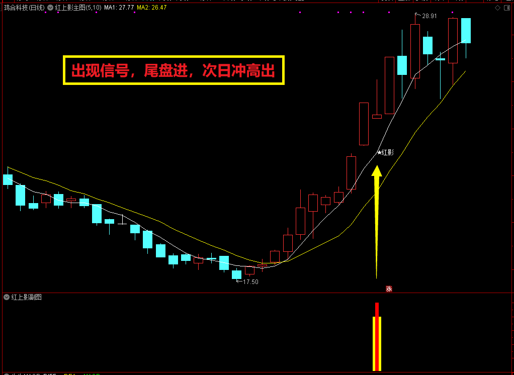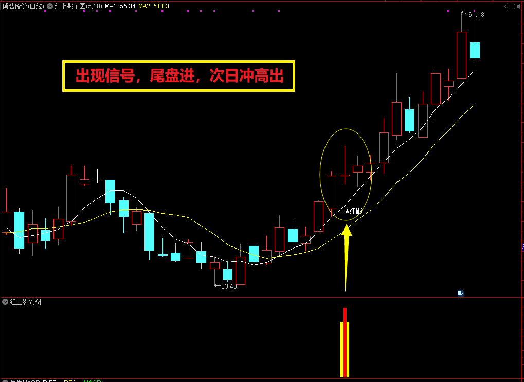 (通达信红影主副图选股公式 今买明卖T+1超短线选股神器 上影线后吃肉肉源码分享)