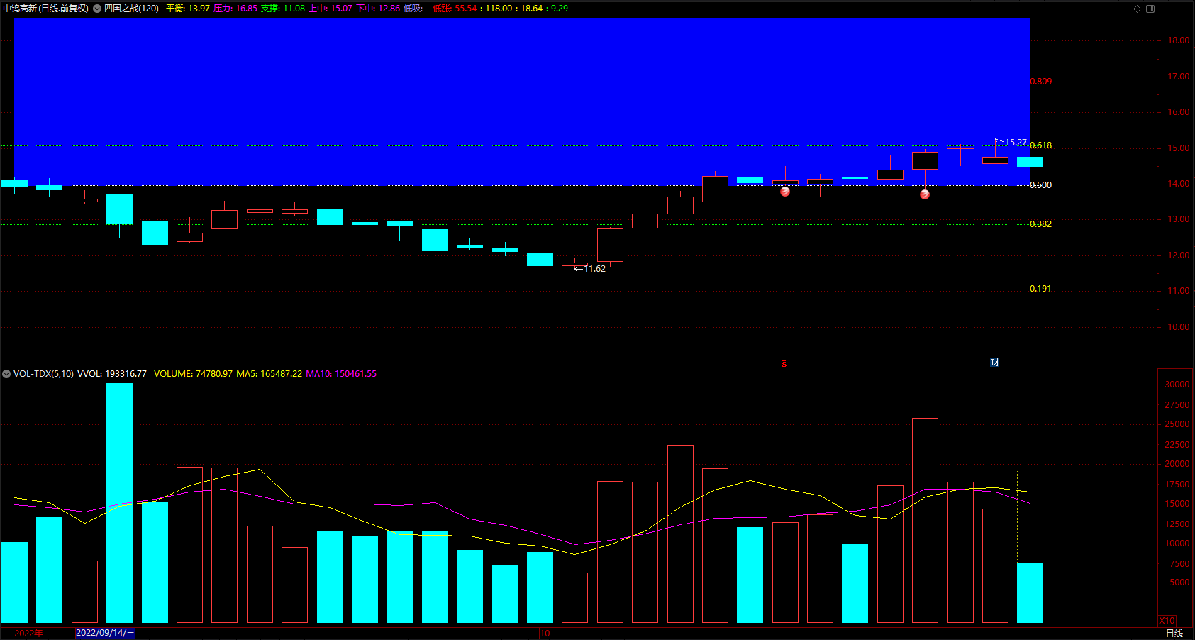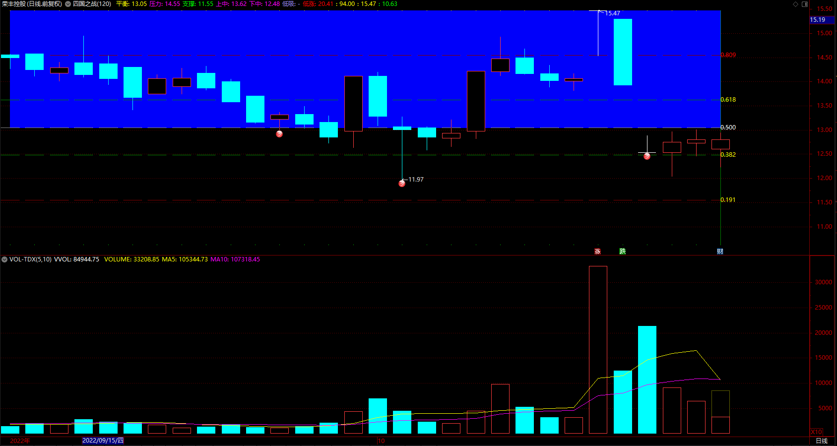 DRAWTEXT(CURRBARSCOUNT=1,上中,'0.618'),COLOR00FFFF;