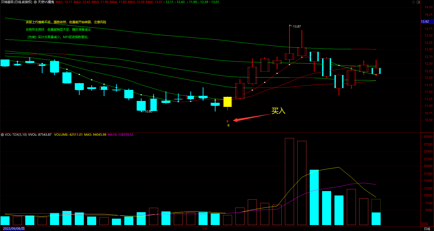 总势量能理想,2/3仓位, 前一轮下跌,是否最佳买点,否则谨慎介入。
