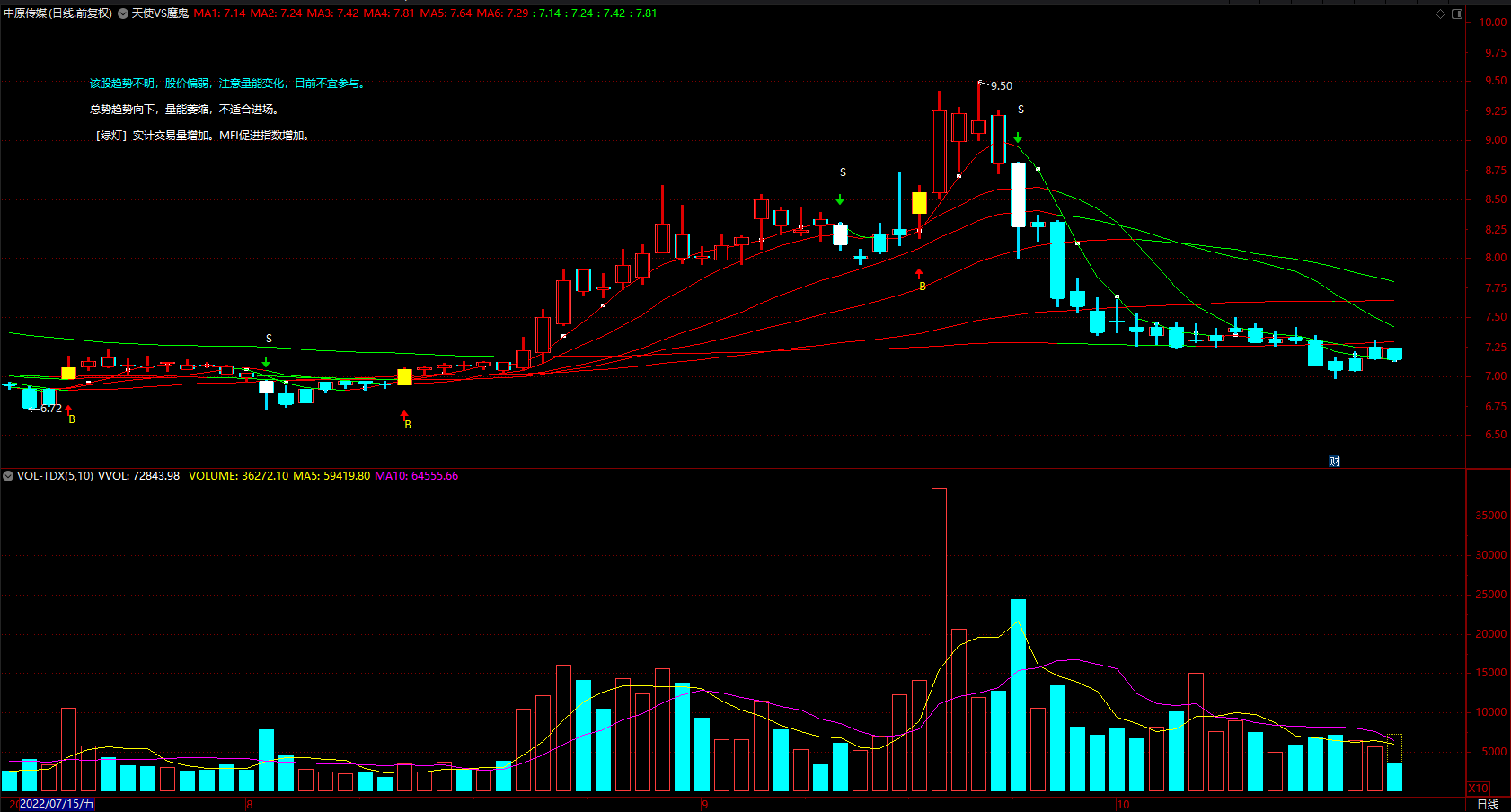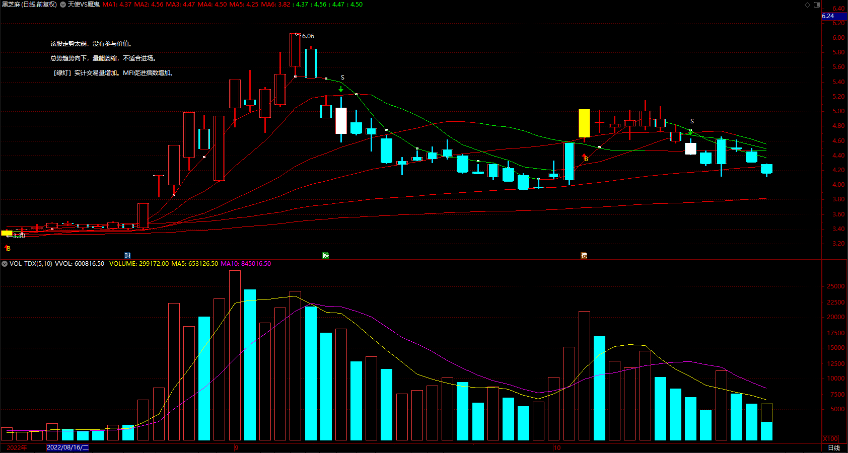 该股形态不佳,注意成交量的变化,但目前不适合参与。