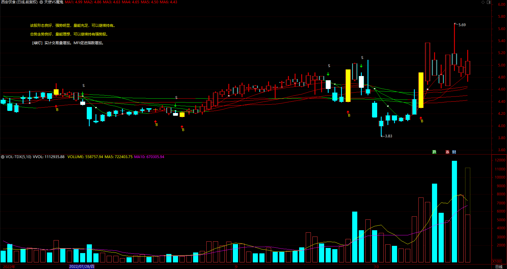 该股上行趋势不变,强势依然,但量能开始转弱,注意风险