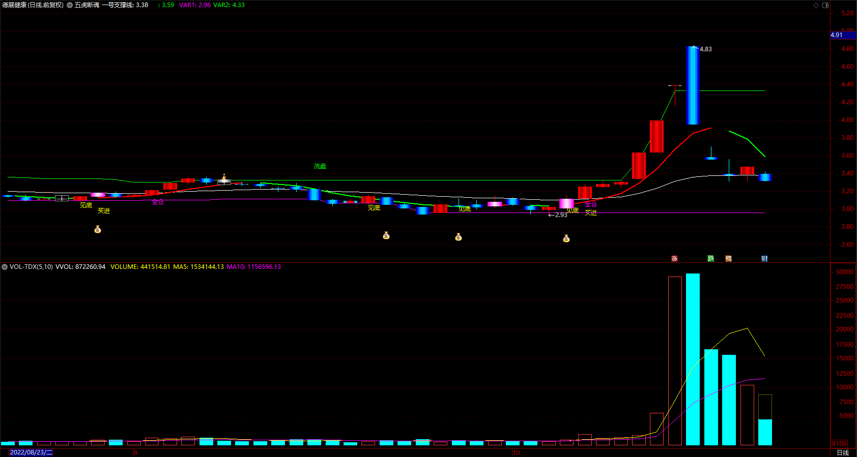 【财富池_量能分析】红粉黄绿四色绝版官方原创核心指,还原个股真实走势(量能判断)