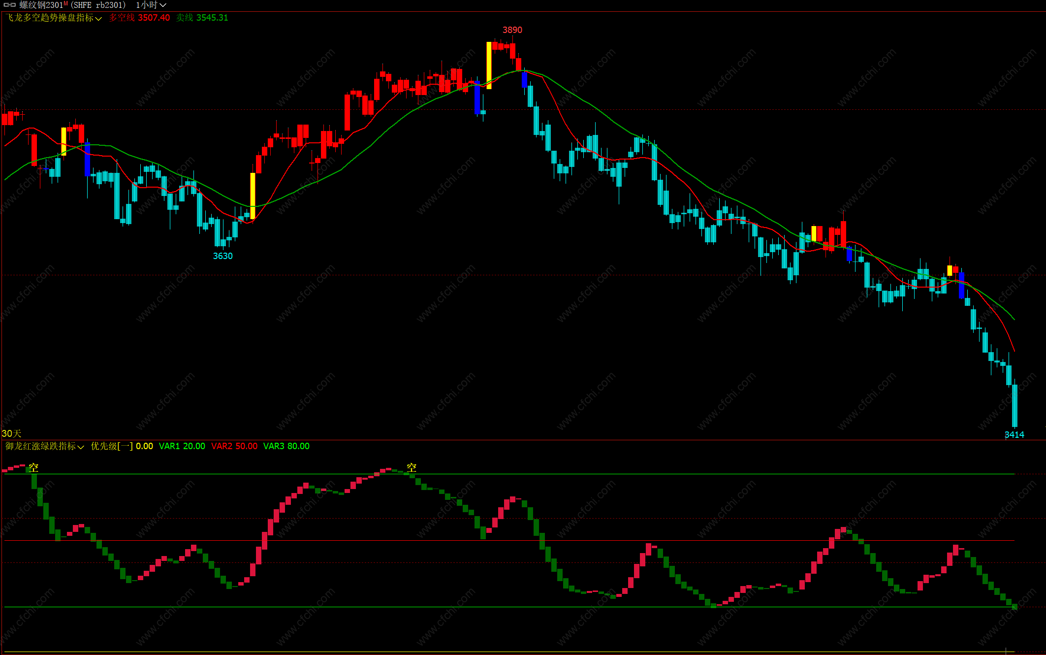 (【K线多空趋势操盘指标】文华软件期货指标公式大全 文华期货公式 期货趋势指标源码)