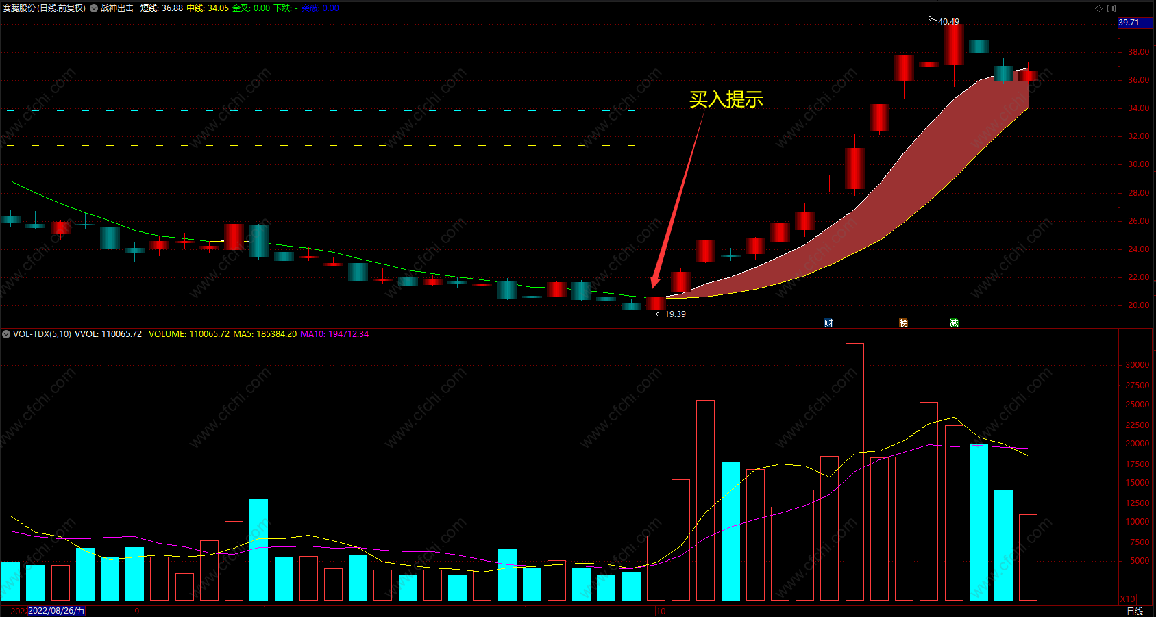 波段买入指标 两线交叉位关注点,红色波段买入提示!