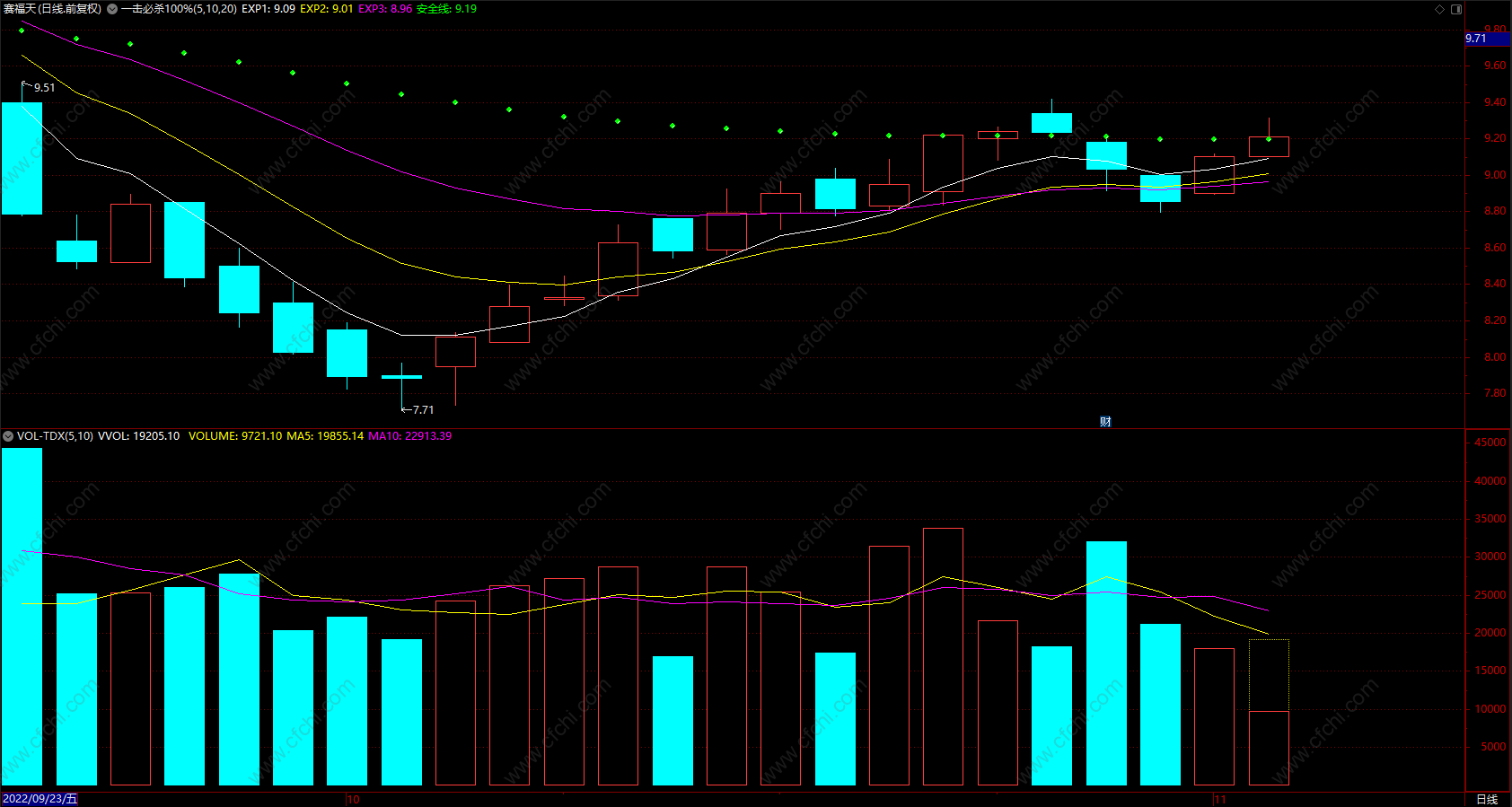 安全线: EMA(CLOSE,55), CIRCLEDOT;