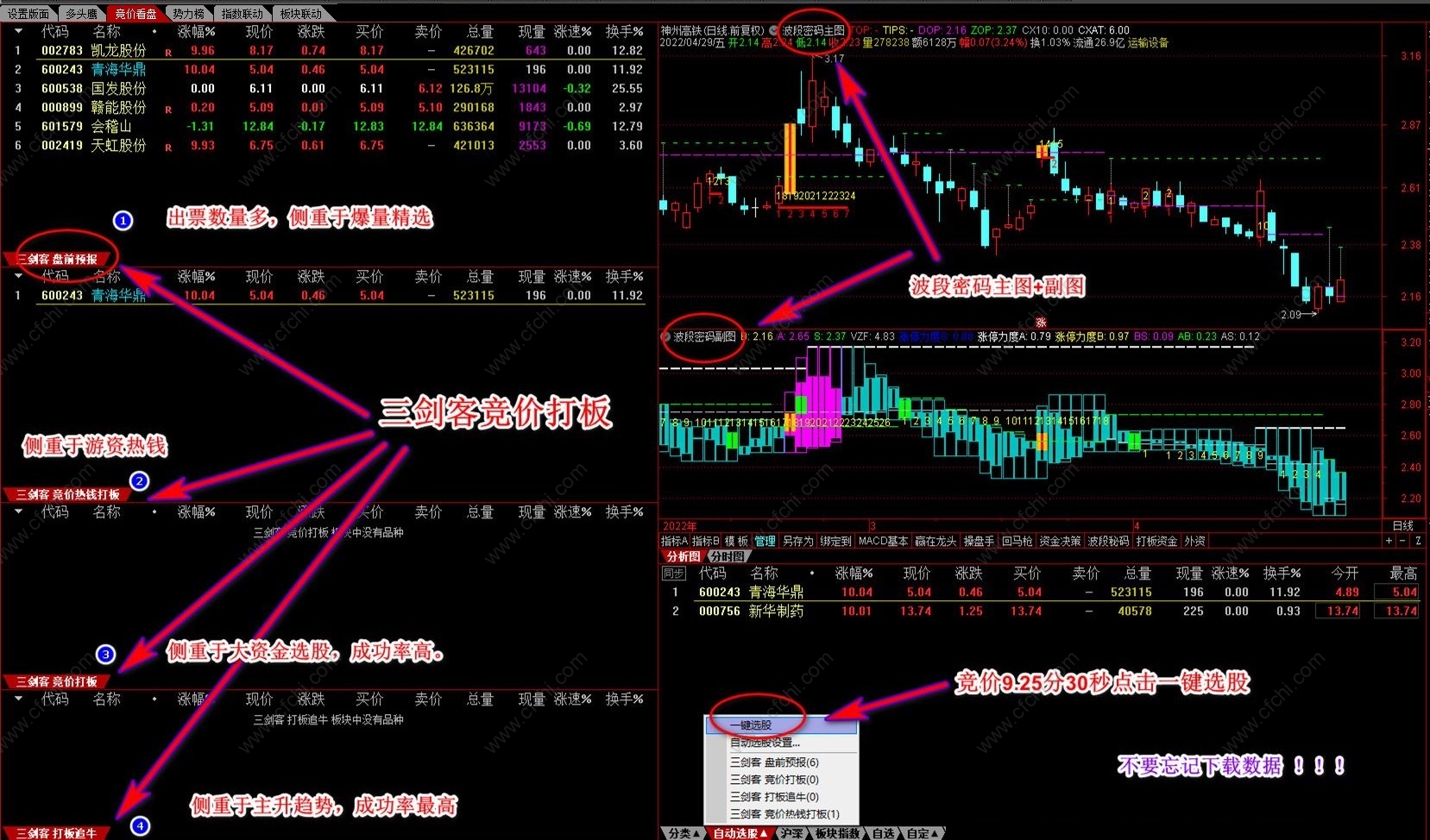 3、提醒:竞价指标是追涨打板用,没有打板知识、经验或经历的朋友请先学习、演练后再用于实战。
