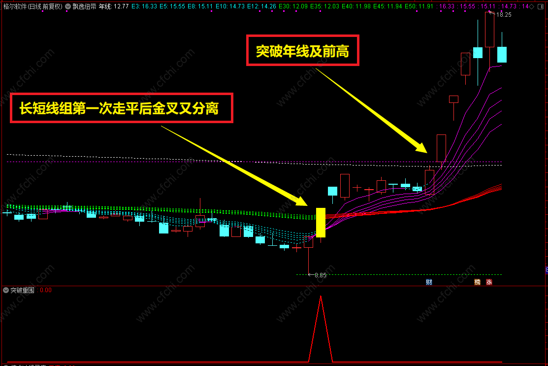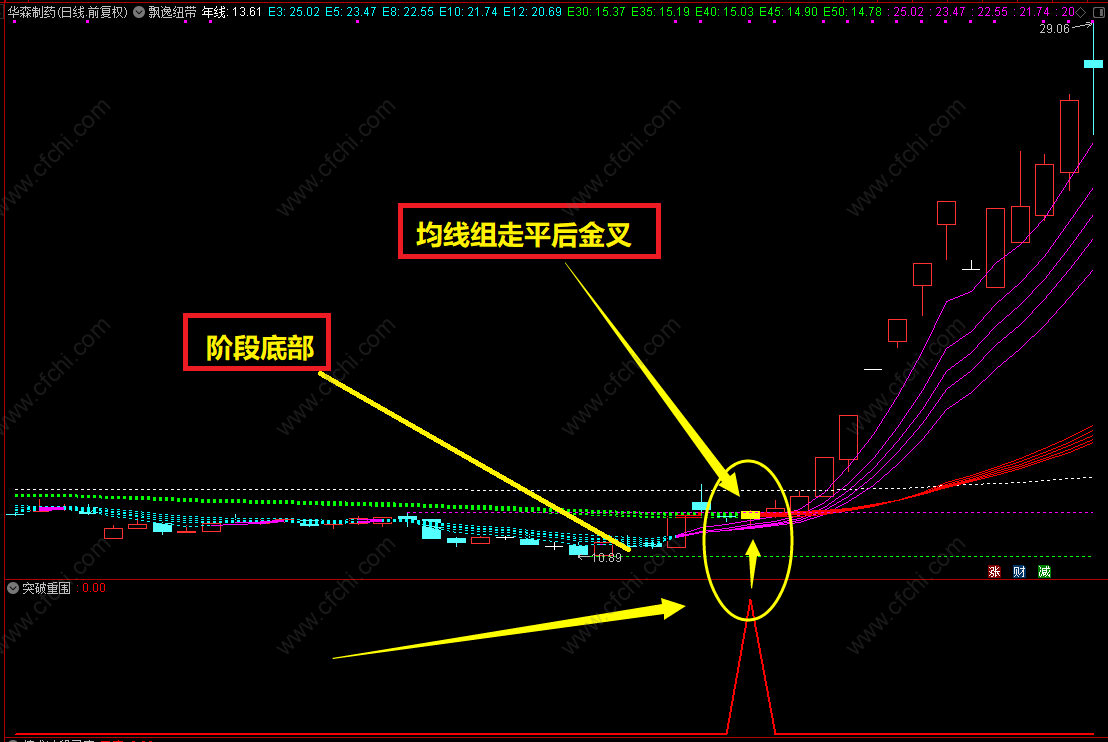 均线在走平后,金叉,多头排列形成,后面就是起飞时刻。