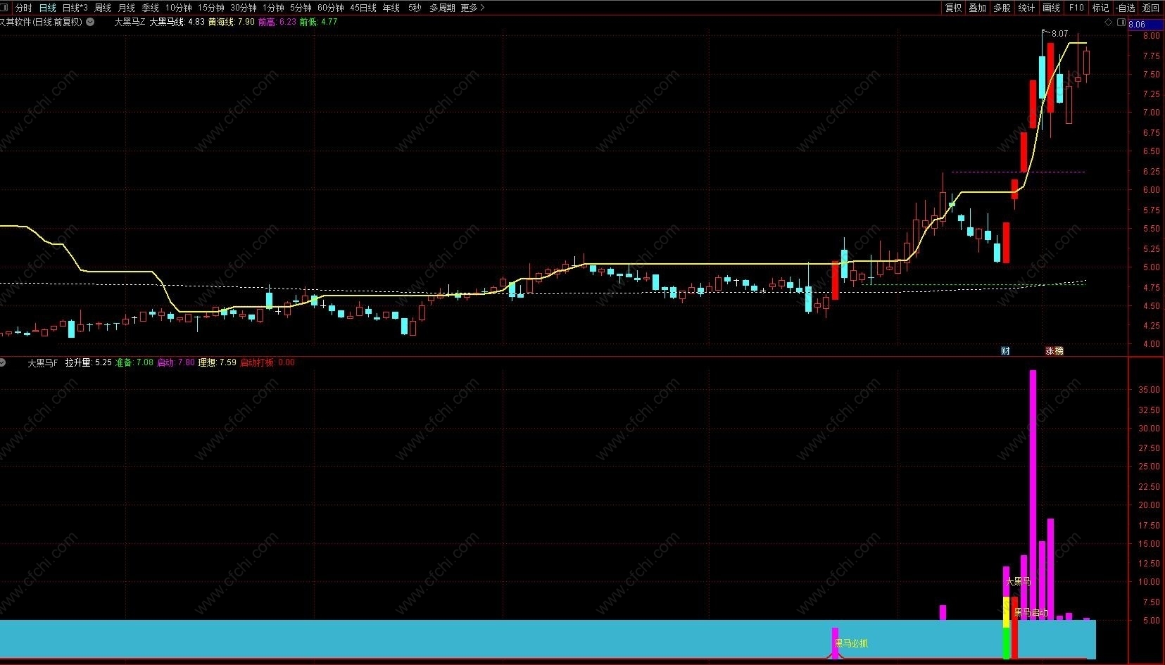 (通达信【超牛大黑马】主图+副图选股指标,大黑马出兰色区域,接连不断量价齐升源码分享)