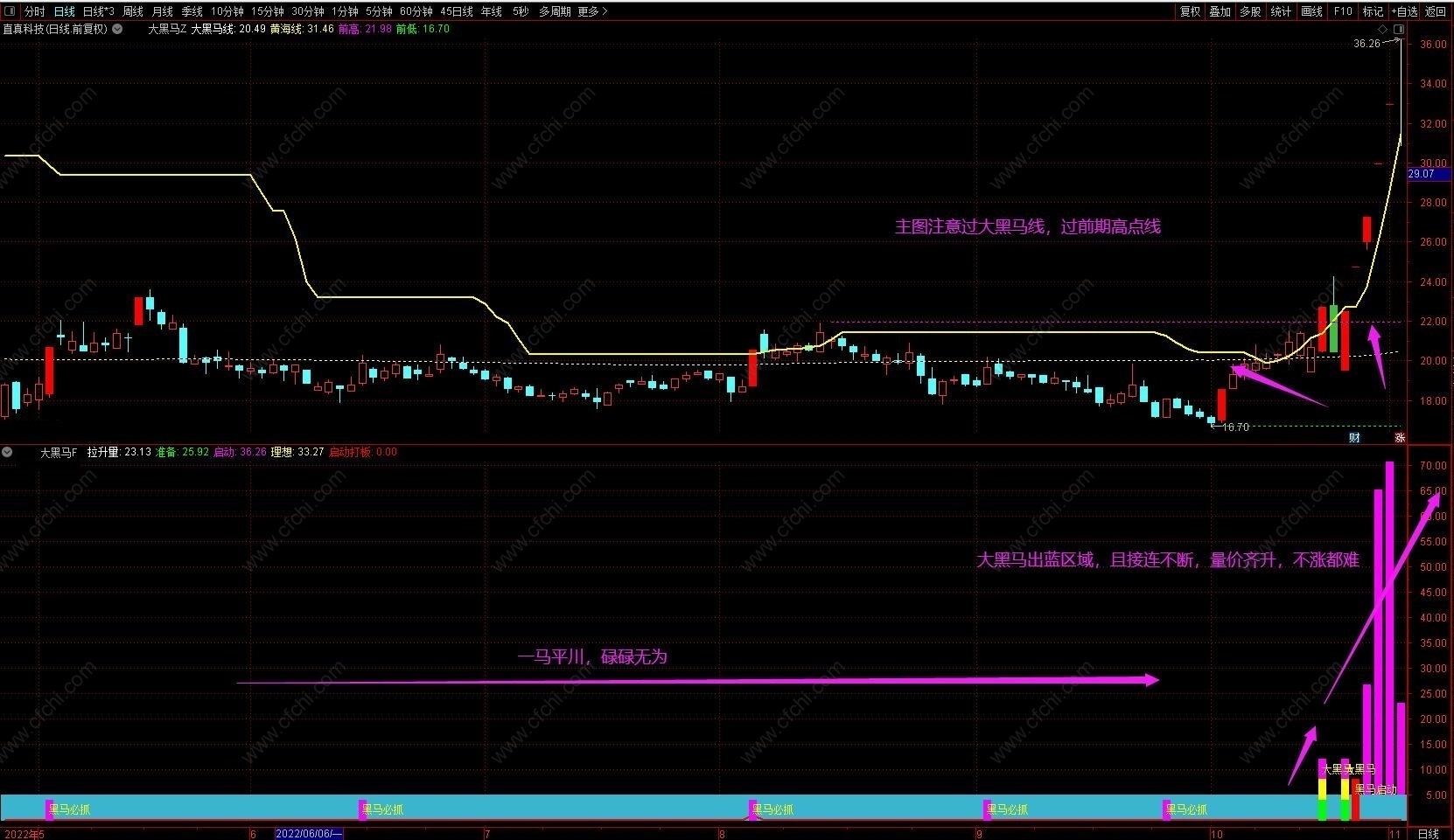 大黑马线出兰色区域,且接连不断量价齐升,不涨都难;