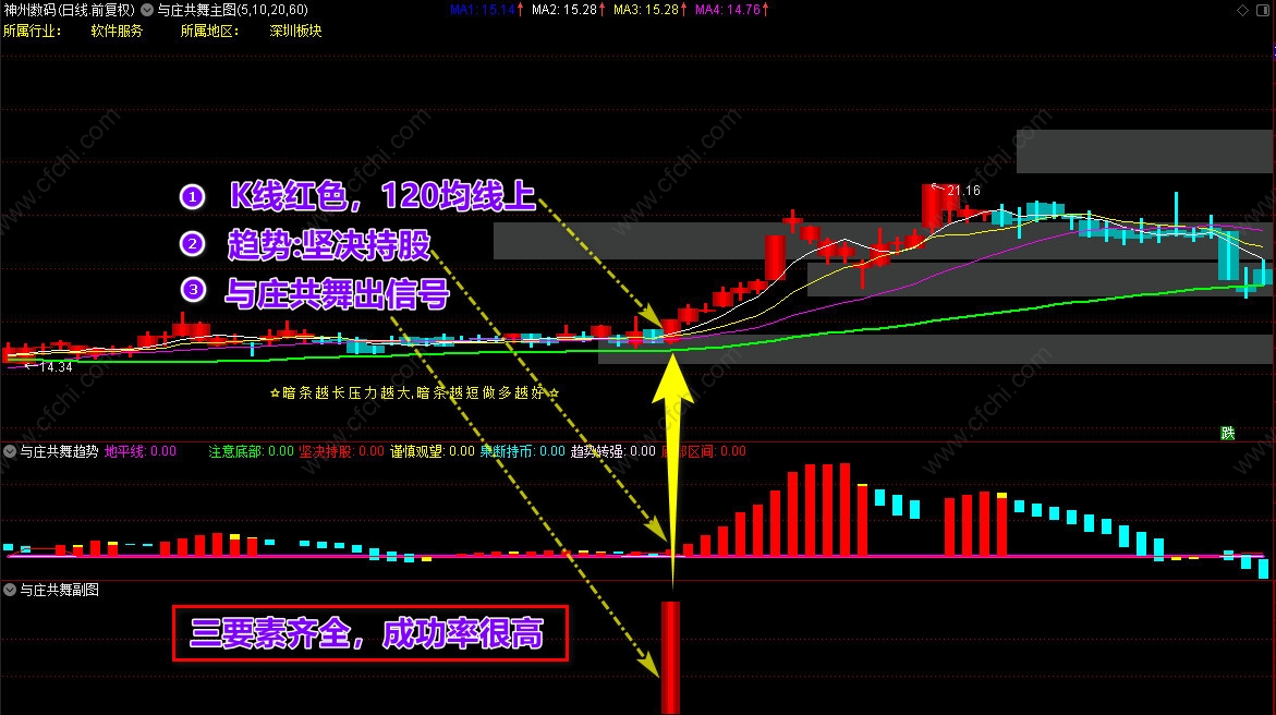 (通达信【与庄共舞】主幅图套装指标,精品小波段,胜率高源码分享无未来!)