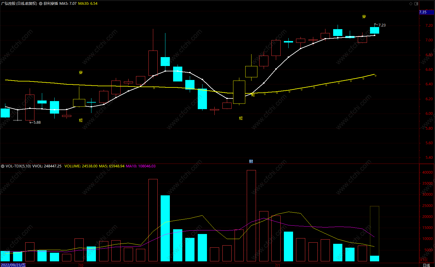 DRAWTEXT(短>0 ,L*0.97 , '短'),COLORYELLOW,LINETHICK1;