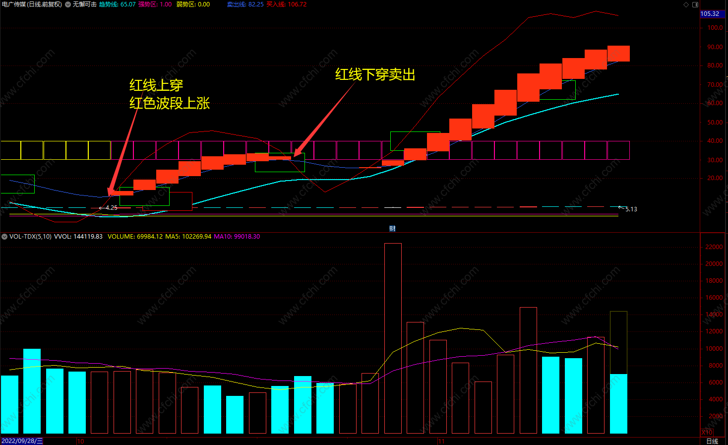 买点:红线上穿买入,红色波段持股
