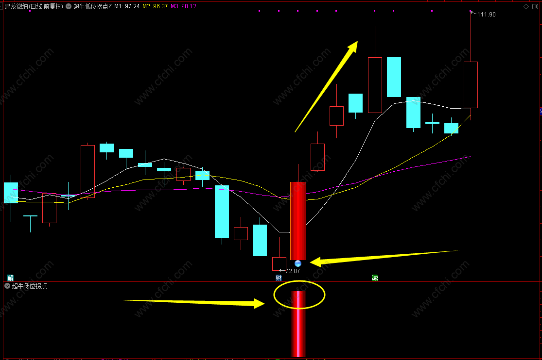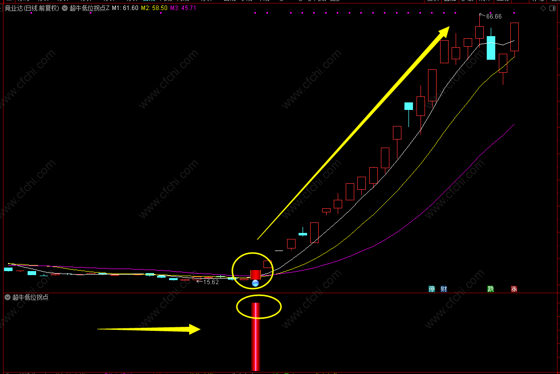 (通达信【超牛低位拐点】主副图选股指标,简单实用 捕捉阶段低位牛妖股!)