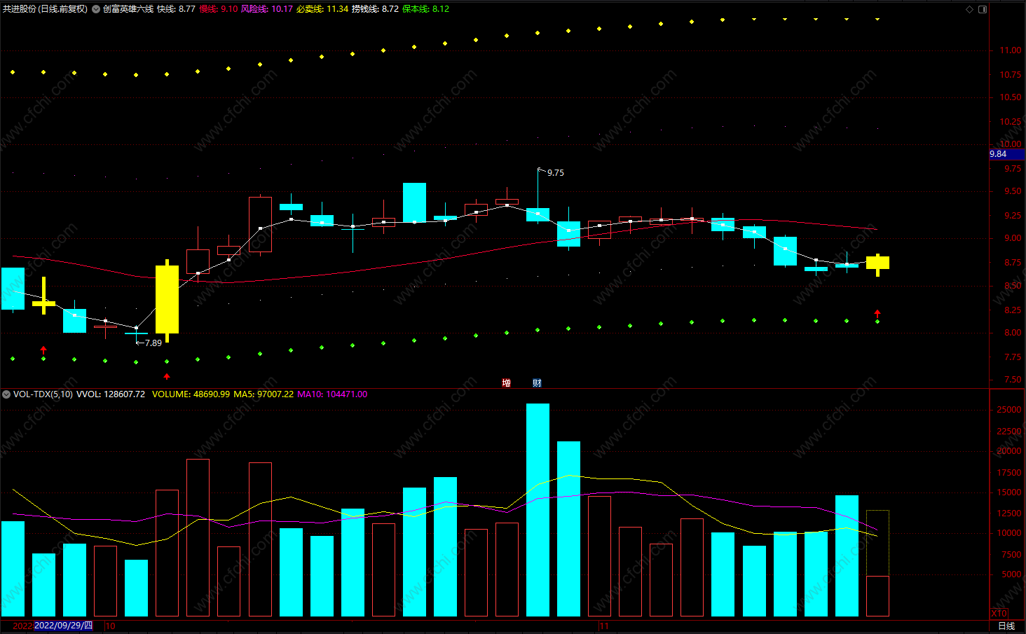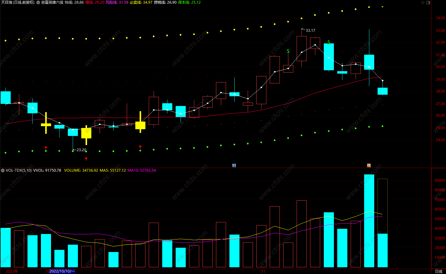 创富英雄六线 通达信短线趋势箭头指标公式 主图 源码