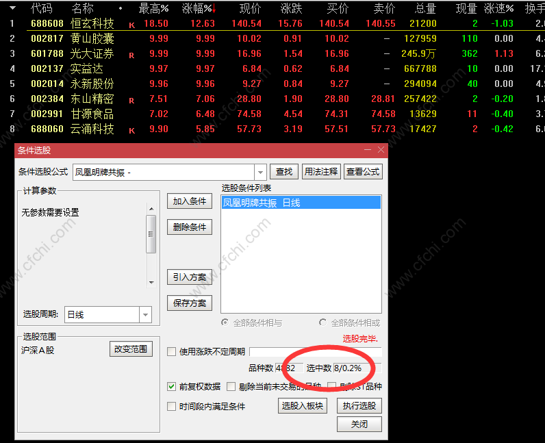 “跟庄上车”和“明牌庄家”信号做成了选股。并加入了凤凰振翅共振选股指标。