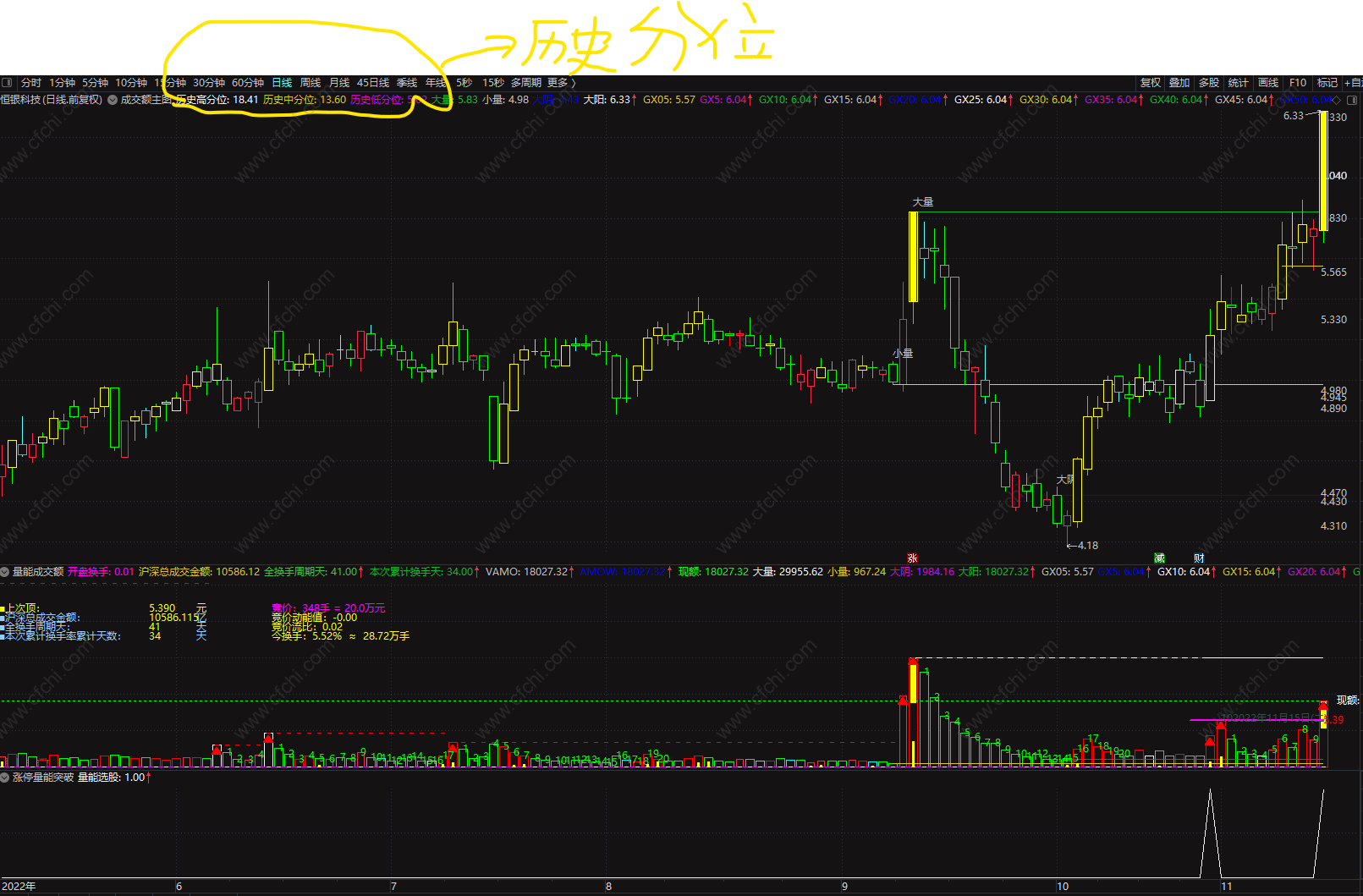 (通达信历史分位竞价首板量能成交额主副图选股预警四合一,竞价时段捉大牛!源码分享)