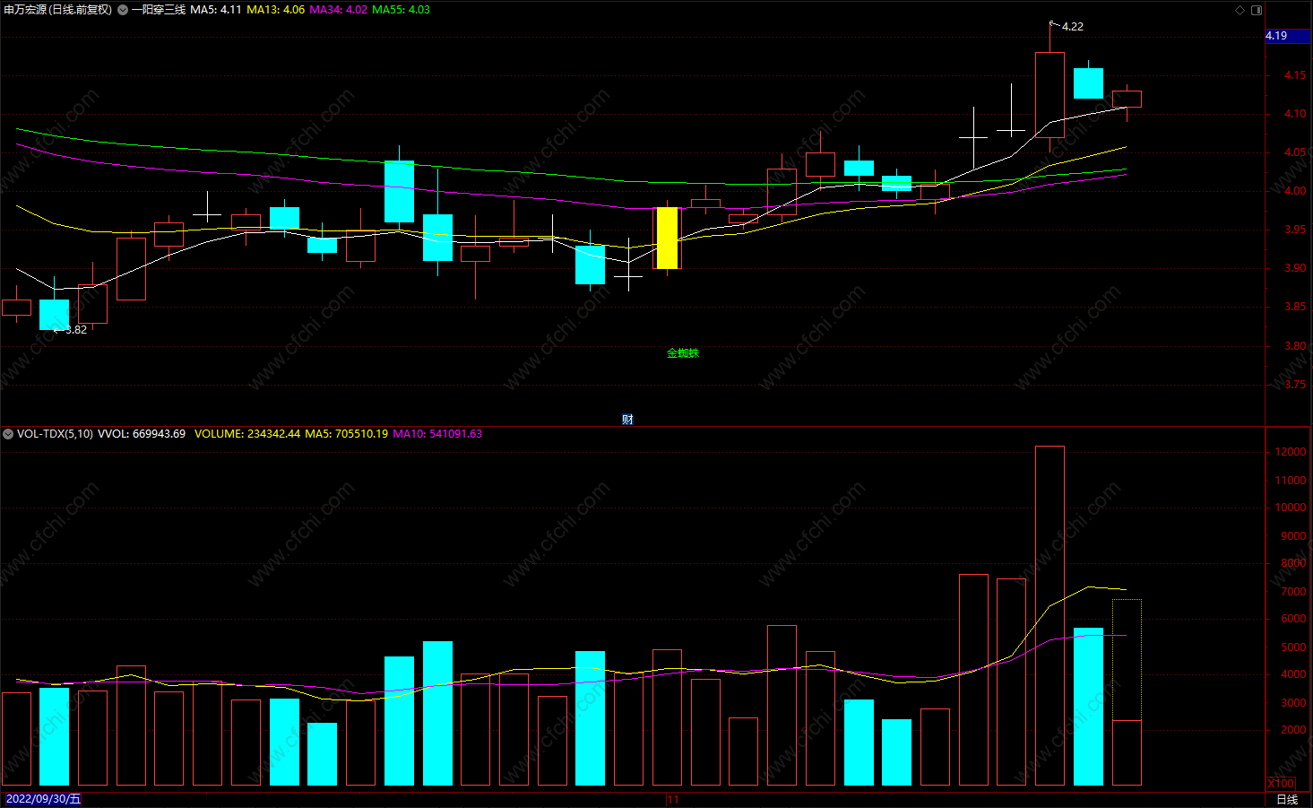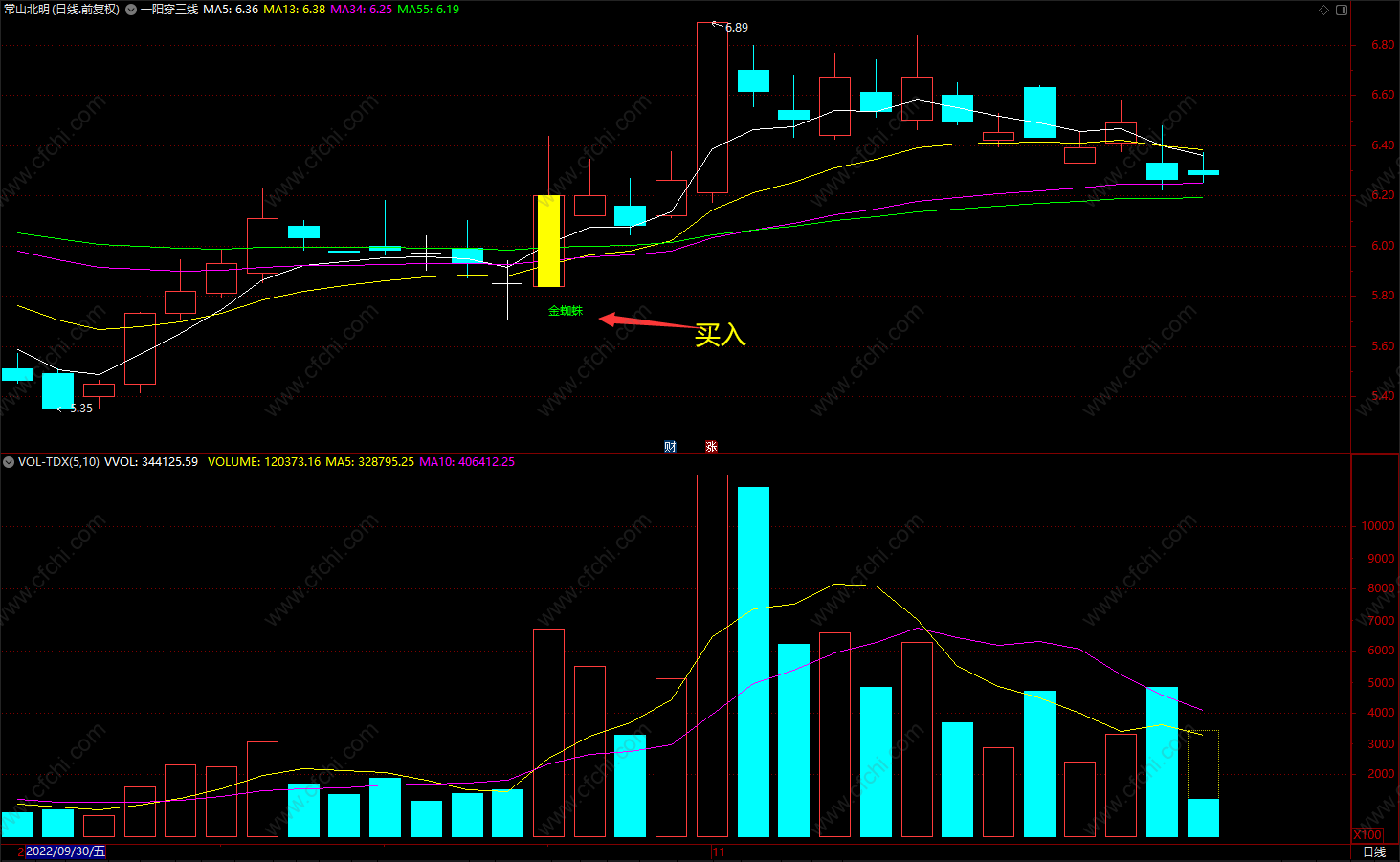 一阳穿三线 通达信金蜘蛛买入提示 无未来 源码