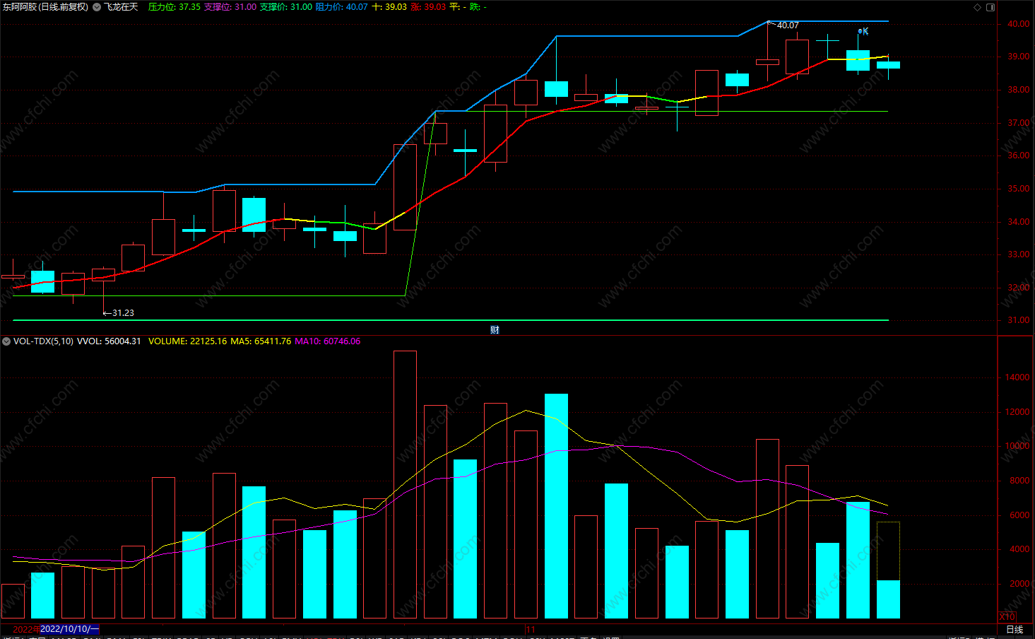 飞龙在天 通达信压力支撑位指标公式 主图 源码