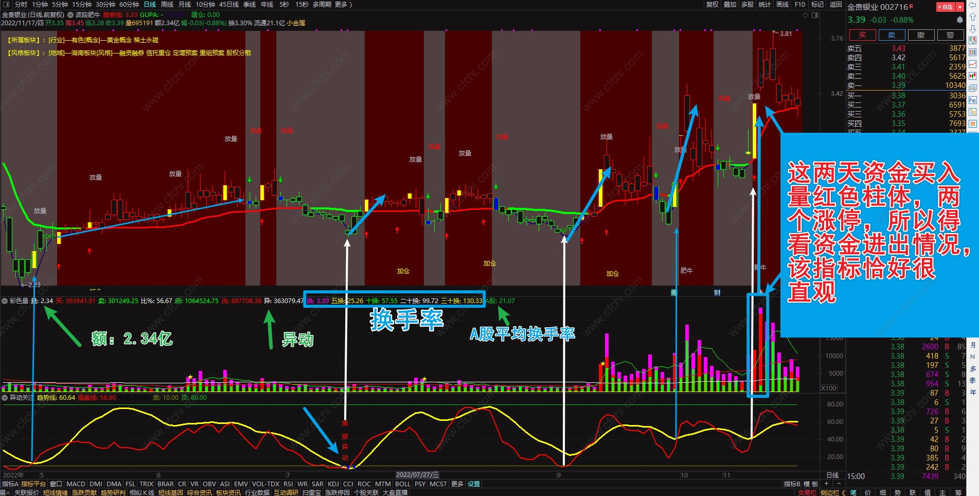 有个逻辑,股价涨跌说白了就是跟成交量有关系,资金进出有关系,时间长了再加上筹码,成本。通过将这些糅合在一起,就能明白内在逻辑。大家都知道换手率低的票不好,太高也不好,那么什么区间是最合适的呢?这个还是得看资金进出情况,有些热点,分分钟成交量惊人,但是进入多少出入多少得要通过专业的工具看,所以将这些简化之后看呢。上涨的波段必然是通过了资金的整理,或者大资金的介入。根据这个逻辑,用我改写的这个成交量和主图公式指标一目了然。我先放图看看。