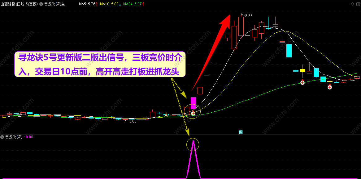 3、寻龙决5号:属于2板选票,3板集合竟价,10点前,高开高走打板进3板,只有强势龙头股才能走出3板,注意追高风险!激进者可参与。