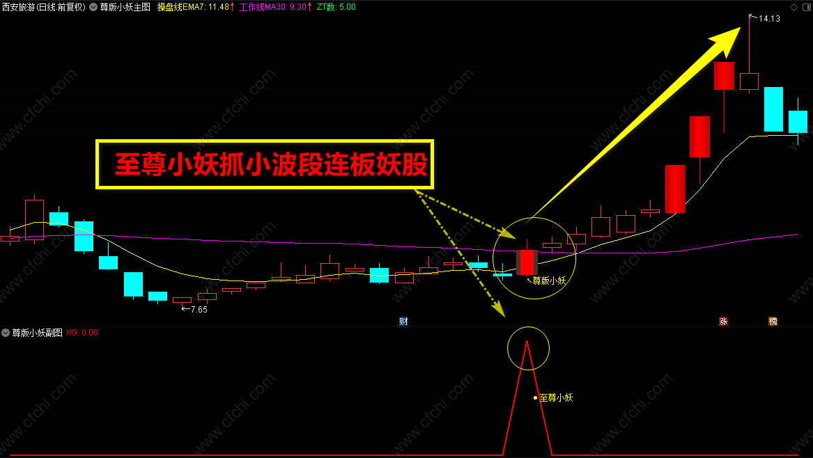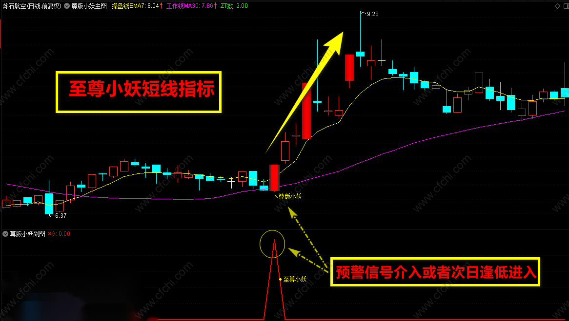 5、《至尊小妖》指标套装;盘中实时预警的信号票可当天介入,也可第二天逢低分批介入,完全不必担心买不到票,适合上班族炒股,也可以专业操盘手使用。