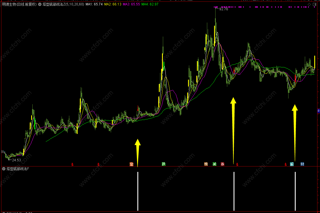 (通达信【塔形底部战法】主图+副图选股指标,一座锁妖塔,锁定短期大牛!源码分享)