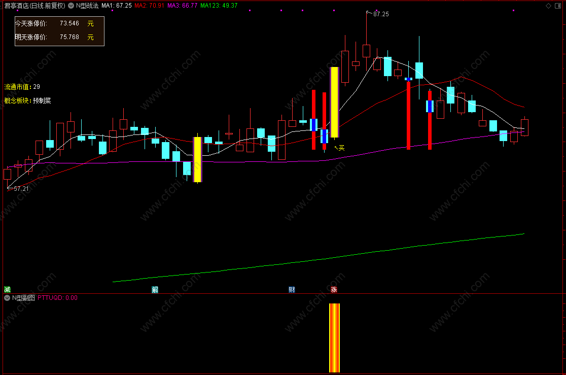 财富池指标公式网(www.cfchi.com)提醒您:指标公式是通过数学逻辑角度编写而来,仅是股票分析环节中的一个辅助工具,对股票选股效率和分析便捷上起到一定的作用,股市是具有不确定性和不可预测性的,请正常对待和使用指标公式!