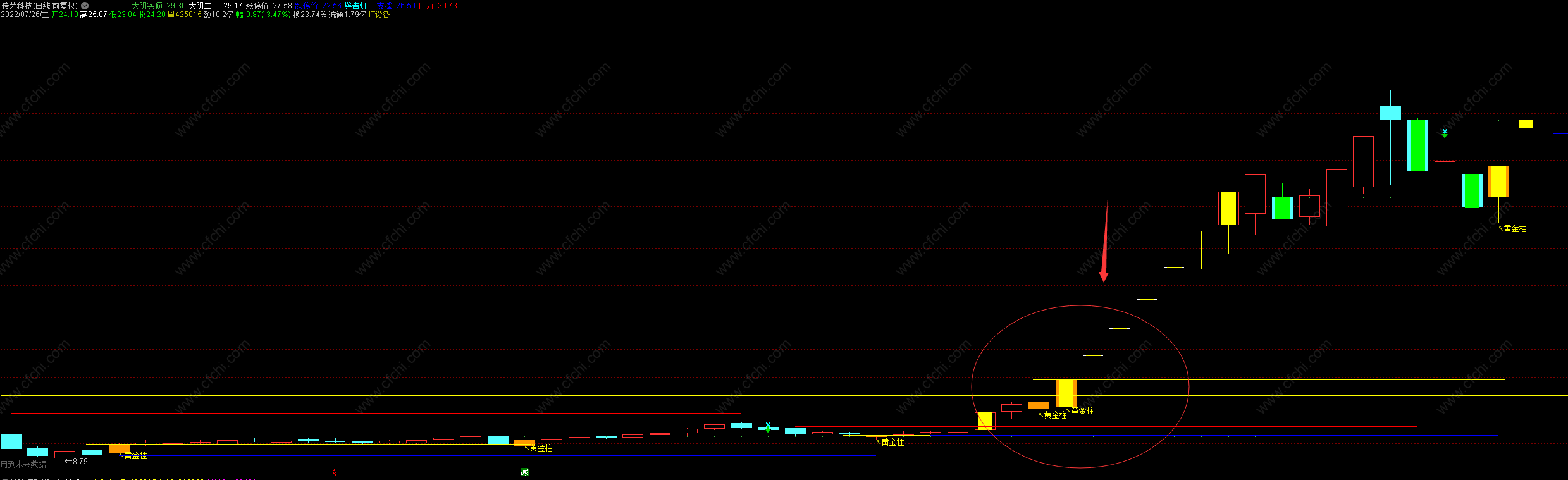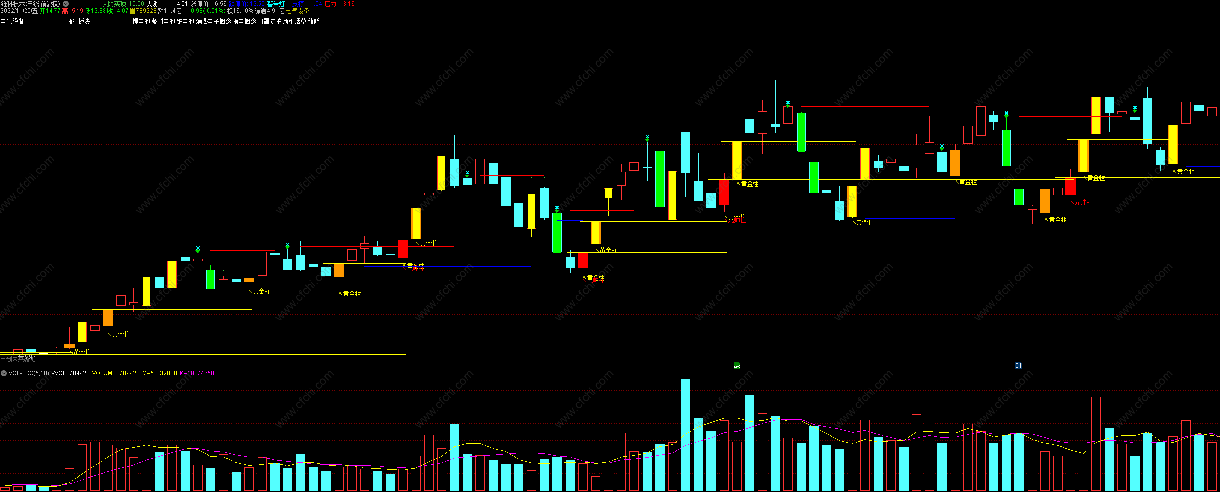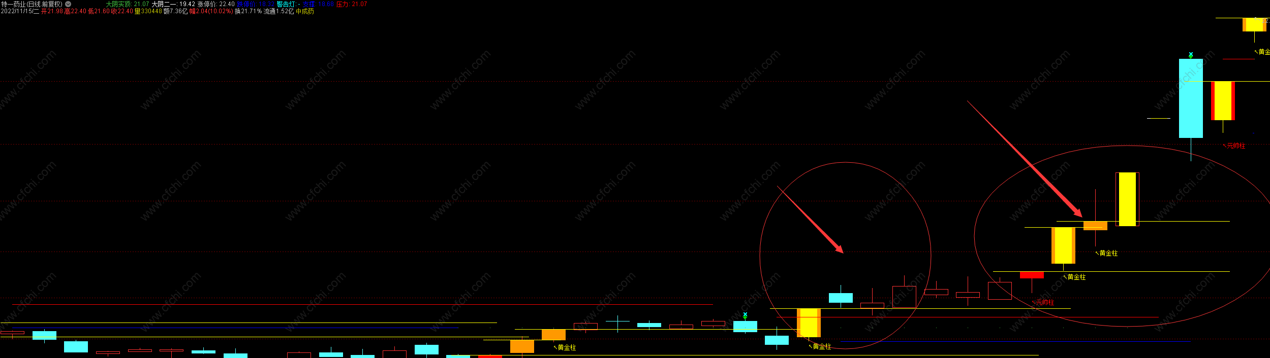 (通达信埋伏抓涨停主图指标神器!K线显示黄金柱、元帅柱及压力位支撑位指标源码分享)