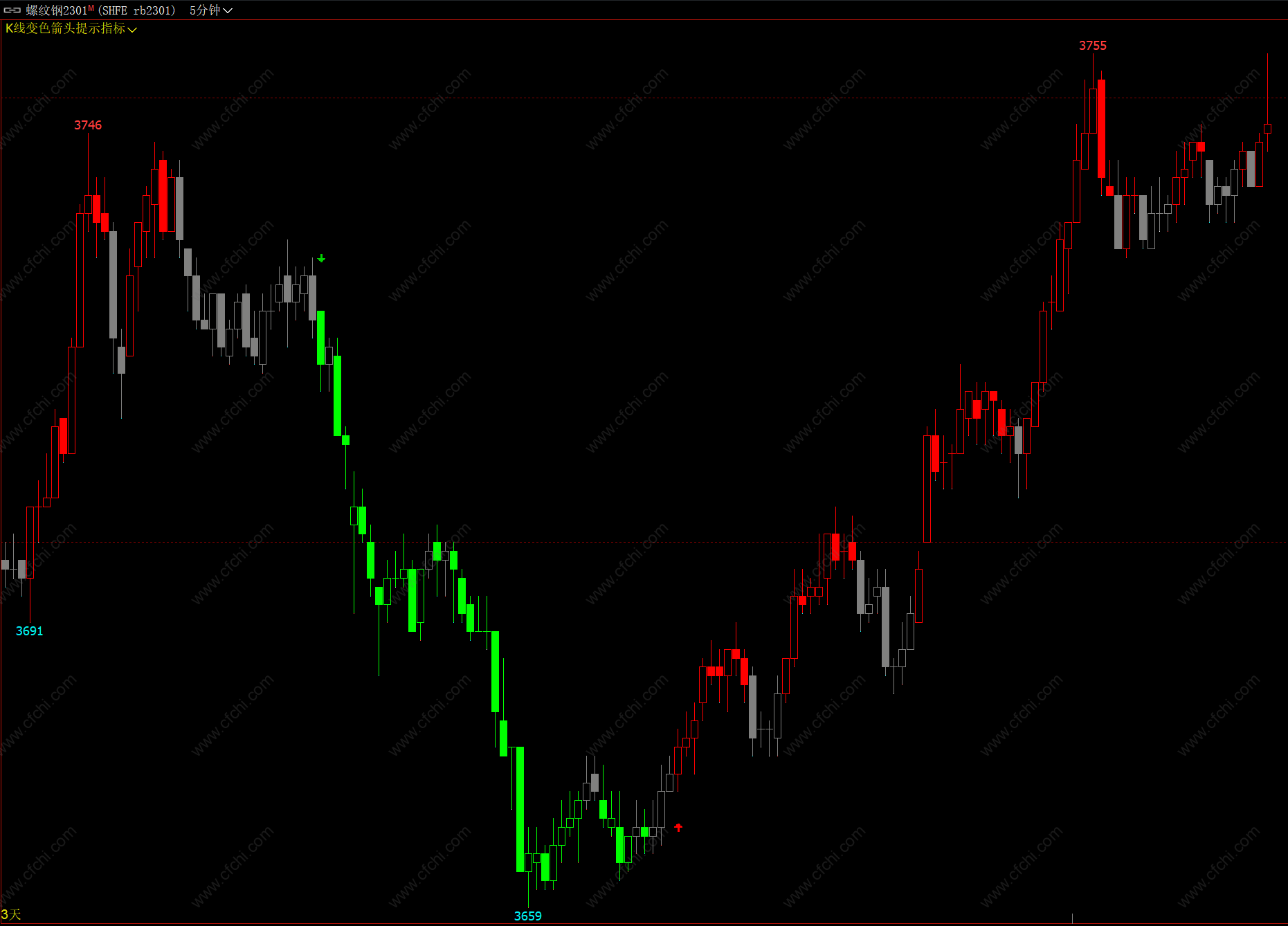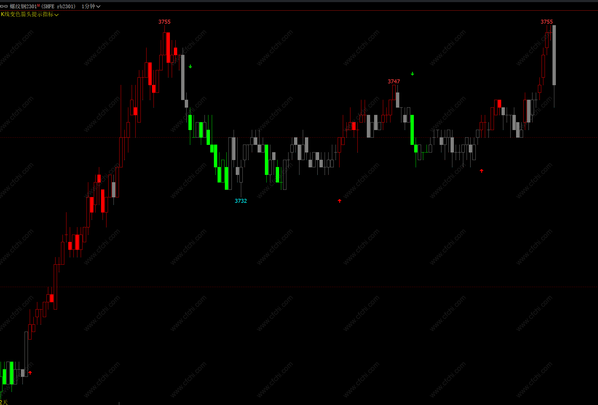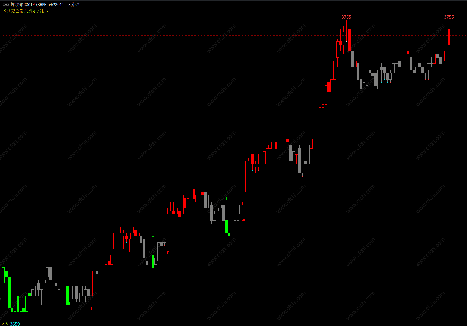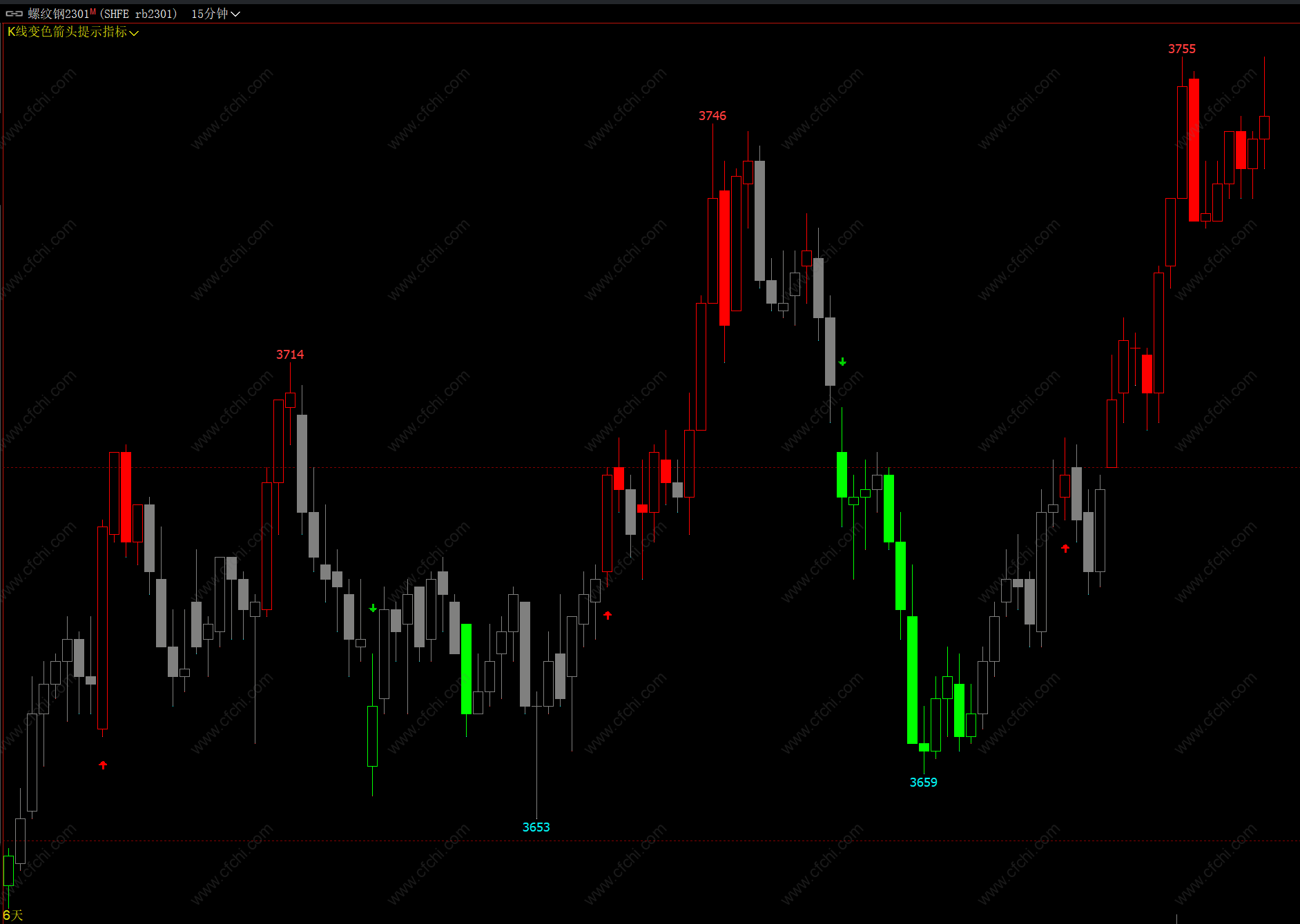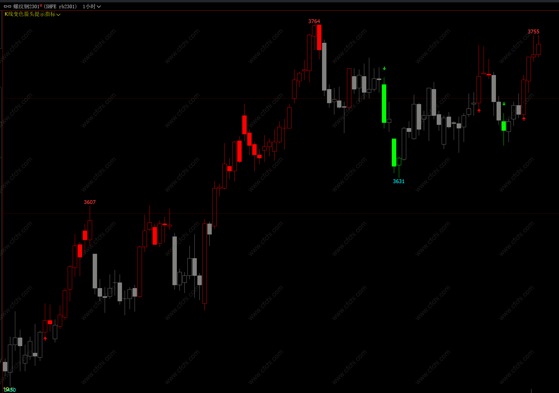 (【期货趋势指标K线变色】文华趋势主图指标 文华期货K线趋势 红绿K箭头提示 文华软件指标公式)