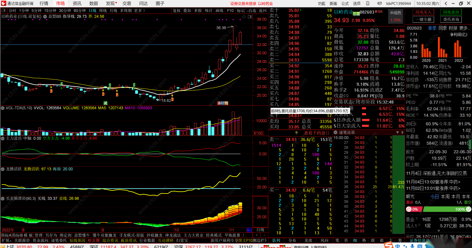 (通达信新【龙腾活跃】副图+主力进出+买卖频谱+仿益盟BS,通达信版,组合无敌套装)