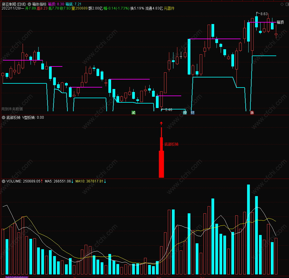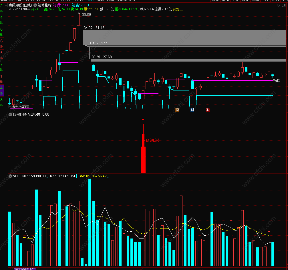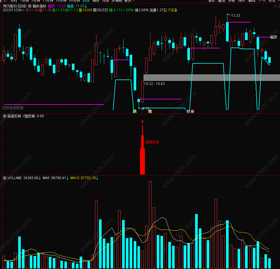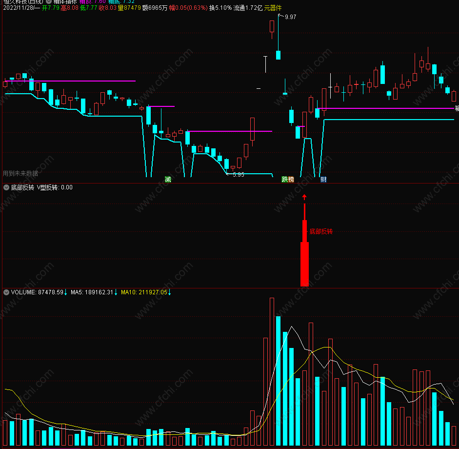 3、指标原理是做底部或者阶段底部的V型反转形态,不了解V型反转的股友可以自己去搜索查询相关知识。