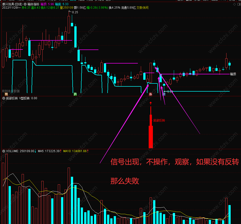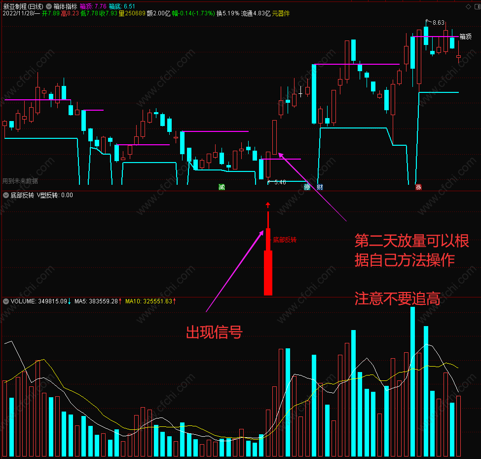 2、指标出票后,不着急操作,可以看看是否确认阶段底部,形成可以抄底形态。