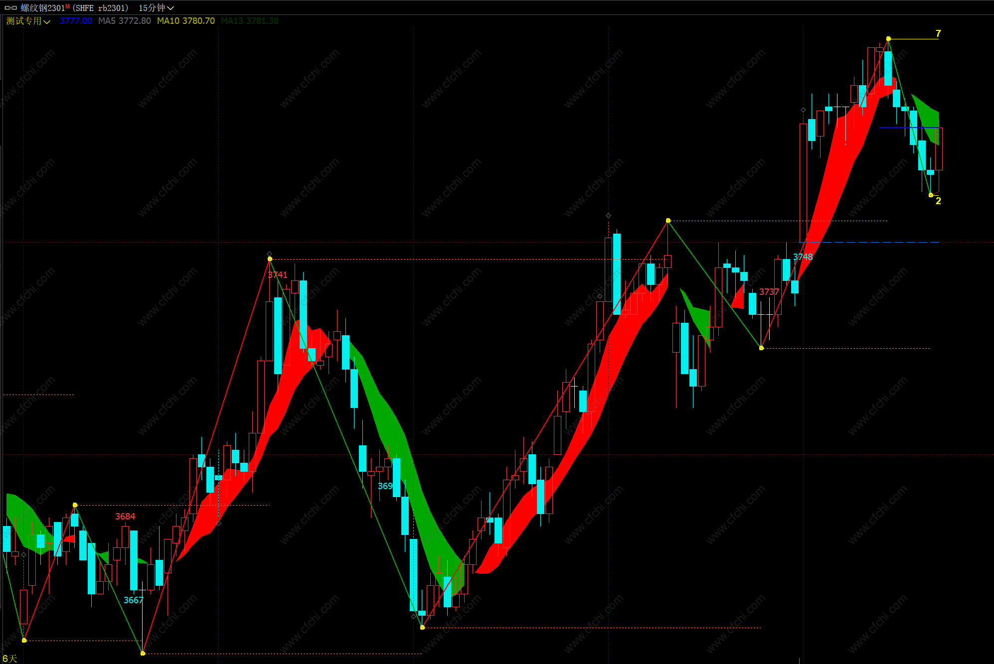 (【期货缠论画笔红绿飘带指标】文华期货缠论线段红绿飘带指标公式 期货缠论指标 K线统计)