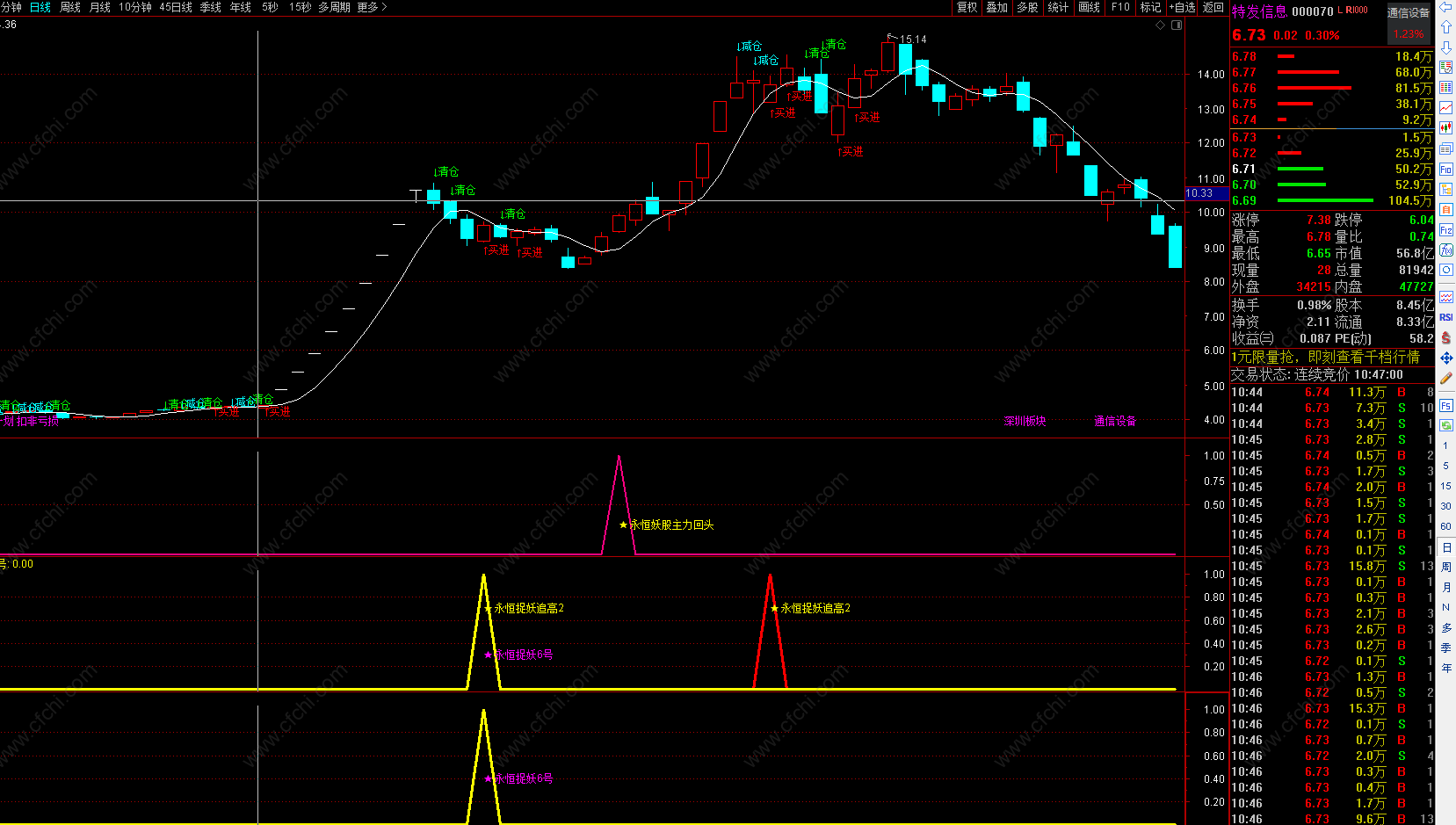 今年以来抓今年以来抓了不少妖股,如600776 东方通信、002565 顺灏股份、601700 风范股份、600331 宏达股份、002243 通产丽星、600218 全柴动力、600614 鹏起科技、600677 航天通信、000070 特发信息、000890 法尔胜、002181 粤传媒、002547 春兴精工、002941 新疆交建、600614 中孚实业、300018 中元股份、002733 雄韬股份、601860 紫金银行等等一大批妖股。