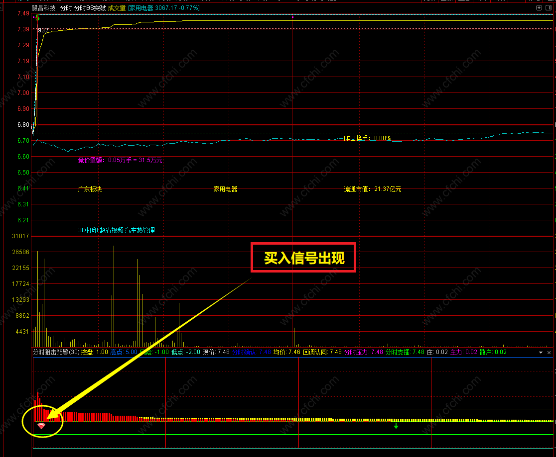 9点30开盘后打开涨幅榜从 高向下选看那只股第一次出现买入信号买入 ,一个真正的分时打板公式,有了该公式,主力再有本事,也逃不过该指标的法眼。