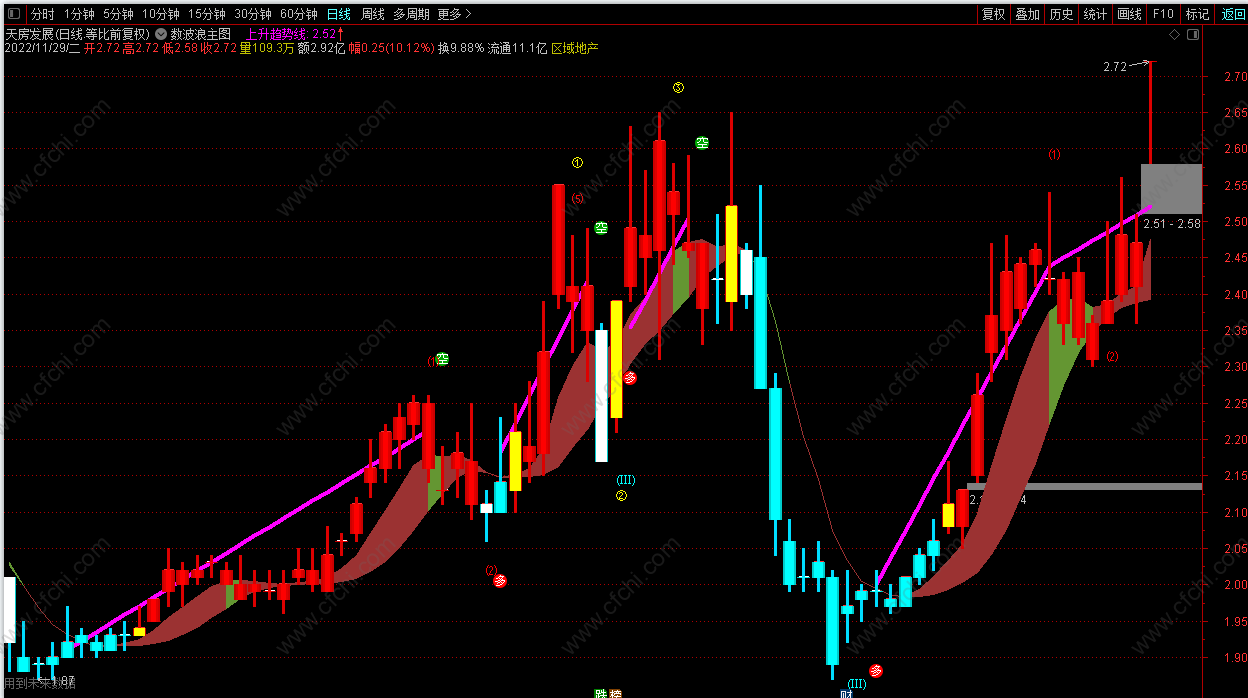 (数波浪主图,适合上班簇和散户.彩带等信号是无未来函数,不漂移.数波浪和上升趋势线是必需用到未来函数.)