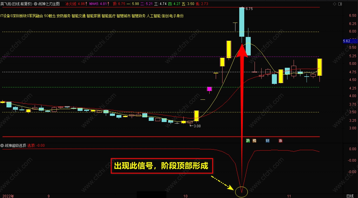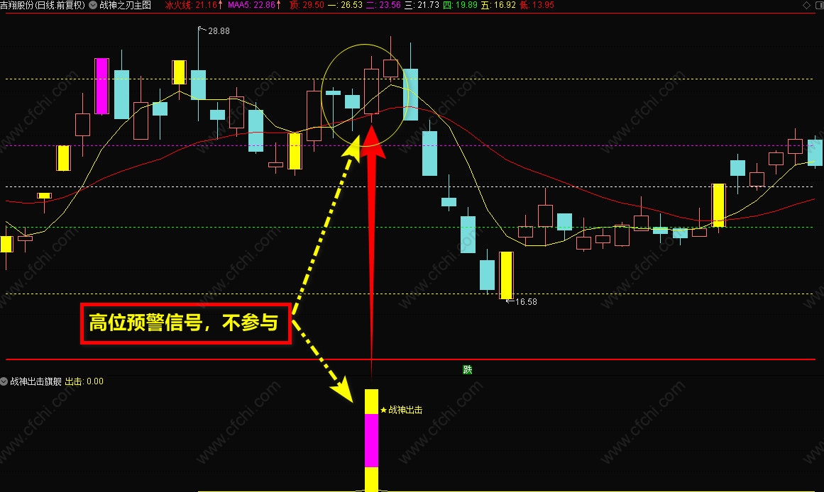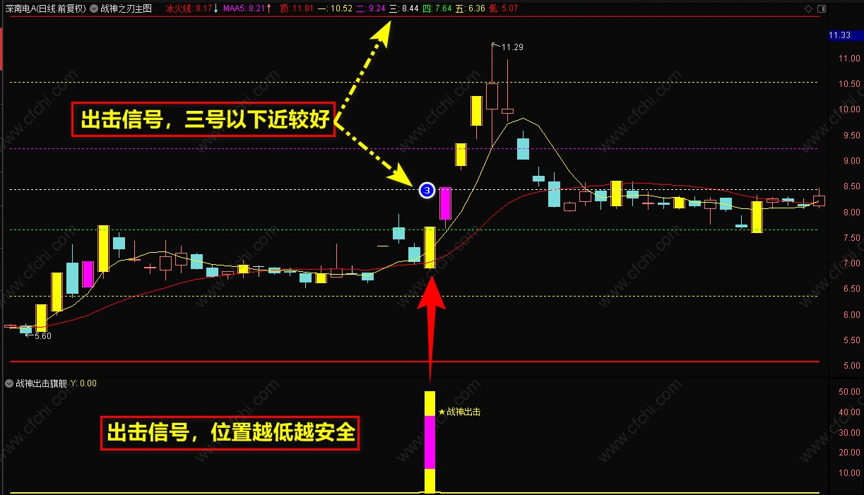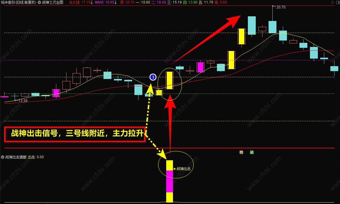 3、【战神抄底】选股指标,一般是盘后选股,信号出现后,最好在底部,【战神主图】的5号线附近,短线介入,持股到顶部卖出。