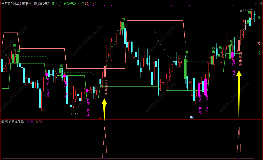 (通达信【双娇寻龙】主副图选股指标,淡红线上捕获大概率强势短牛,今买明卖源码分享)