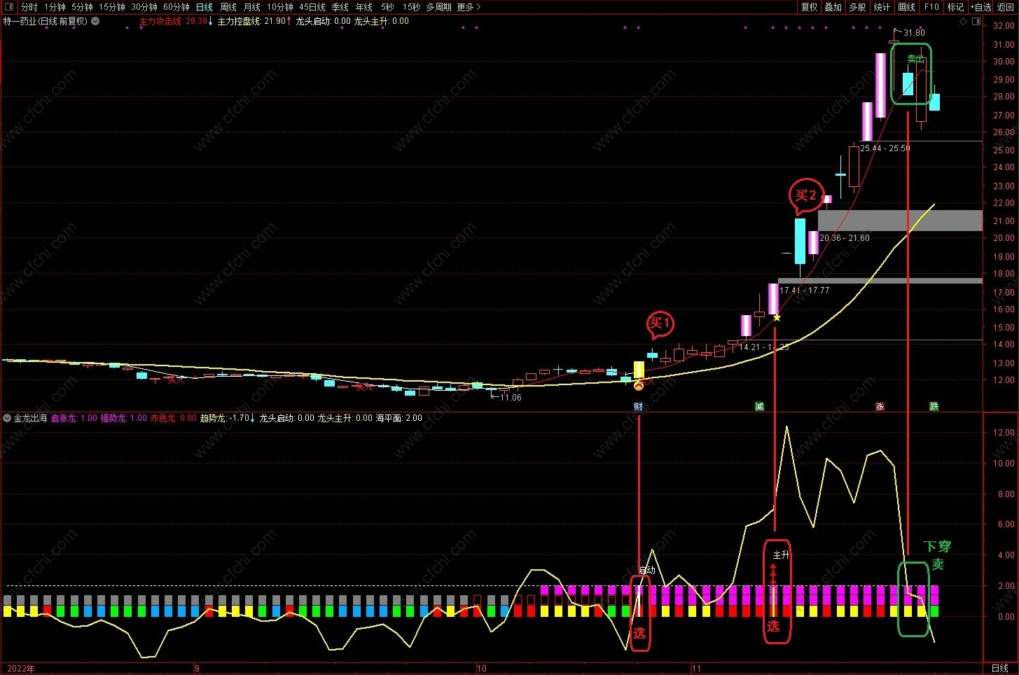(通达信【金龙出海】主副图选股指标,专门用来抓大牛大妖而又能拿得住牛股,源码分享!)