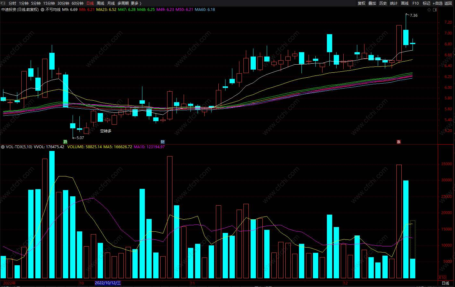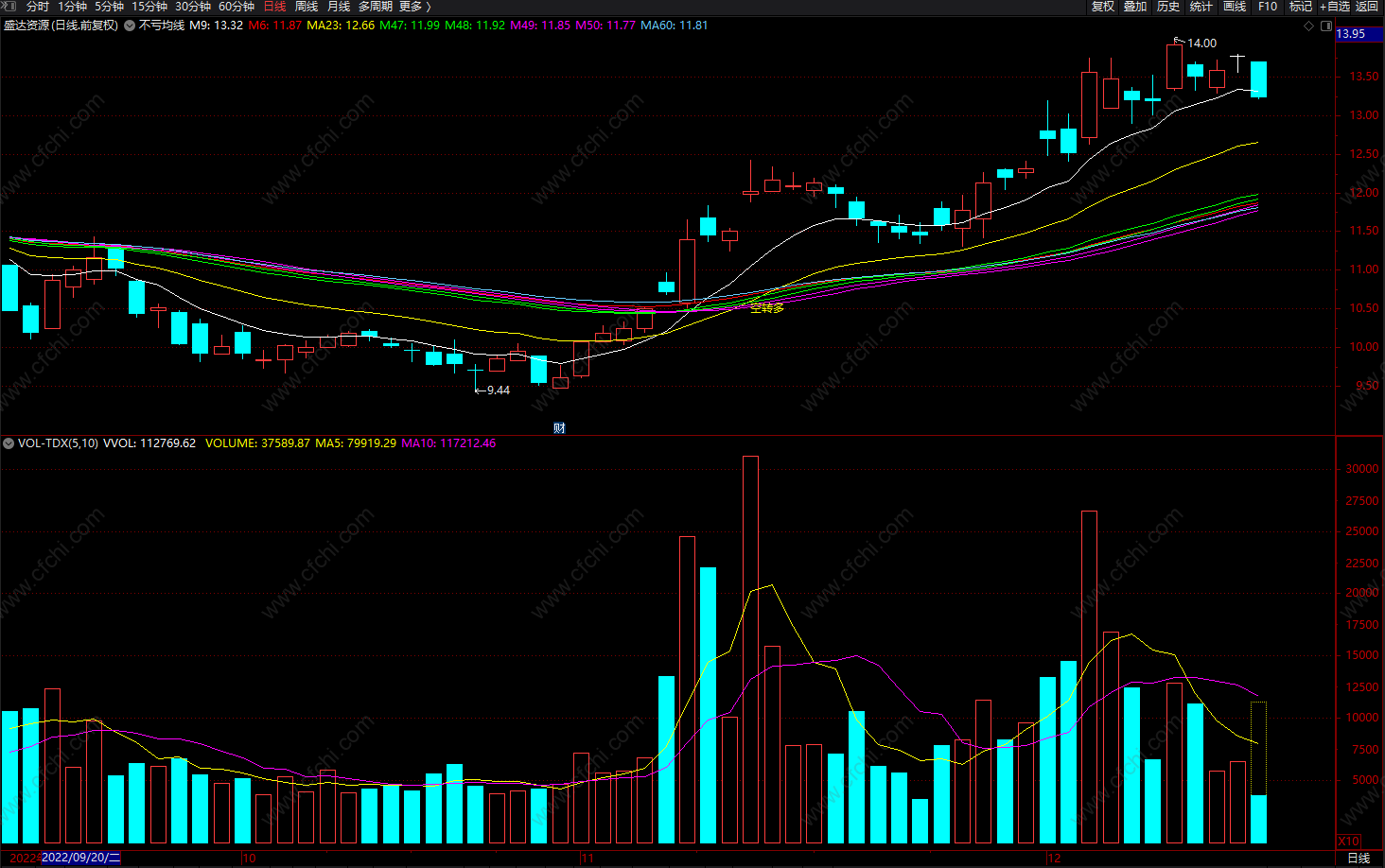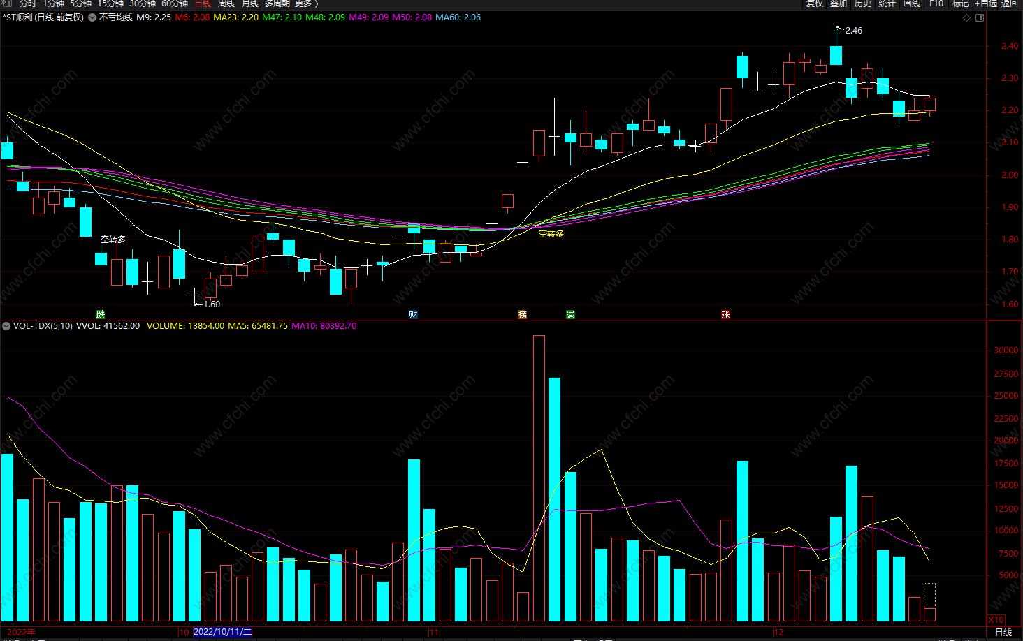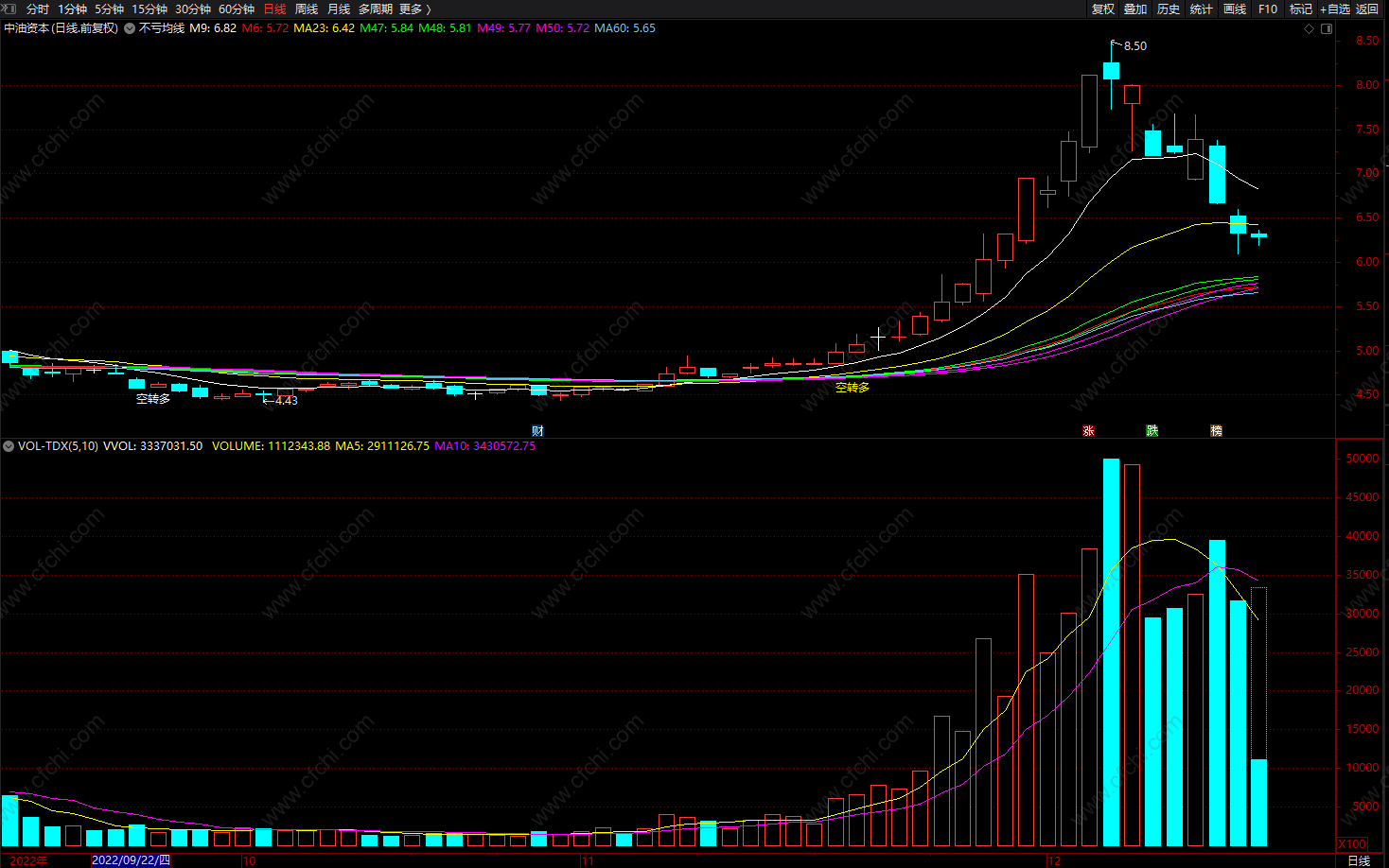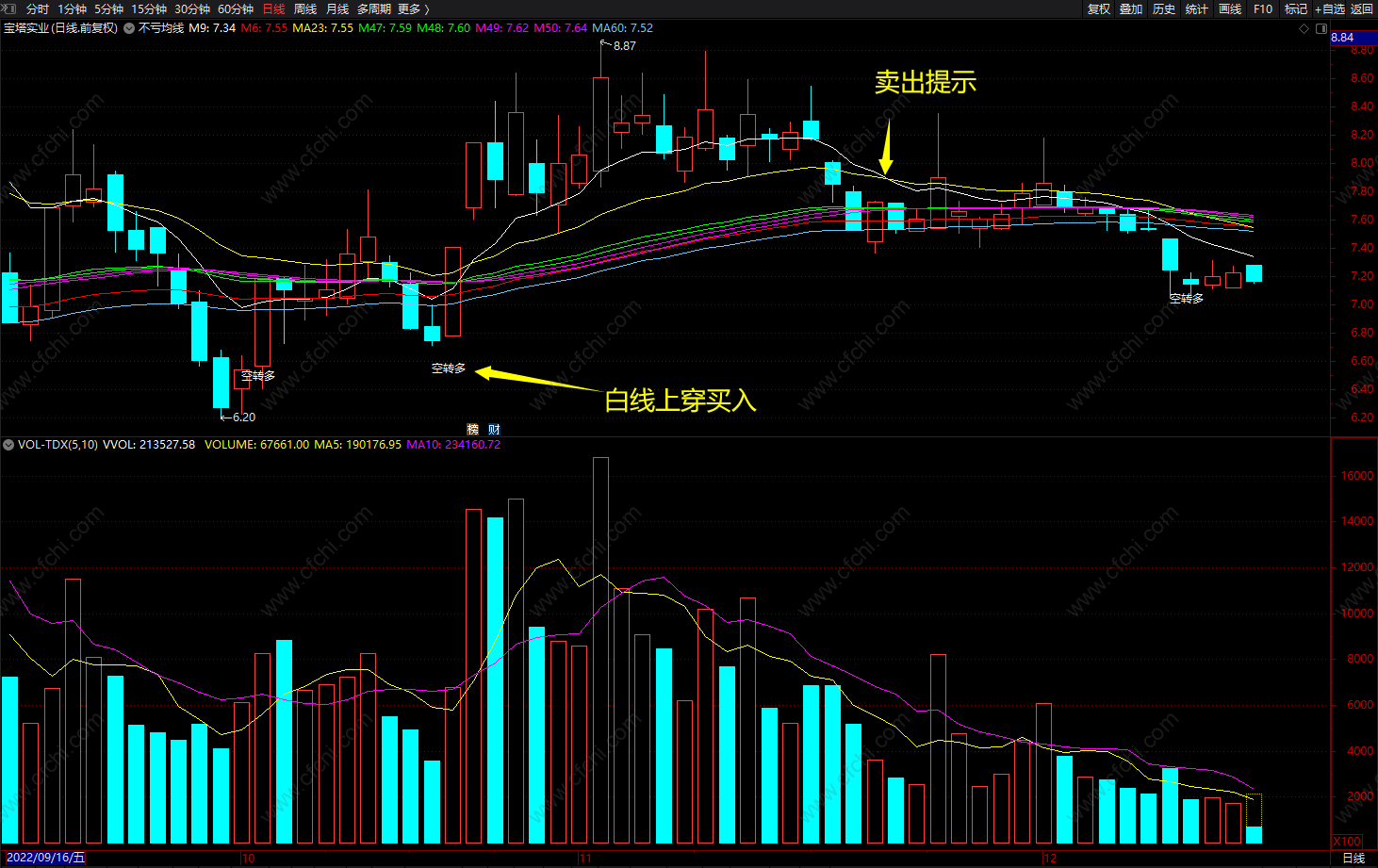 (不亏均线 空转多 通达信均线买卖指标 波段主图 源码)
