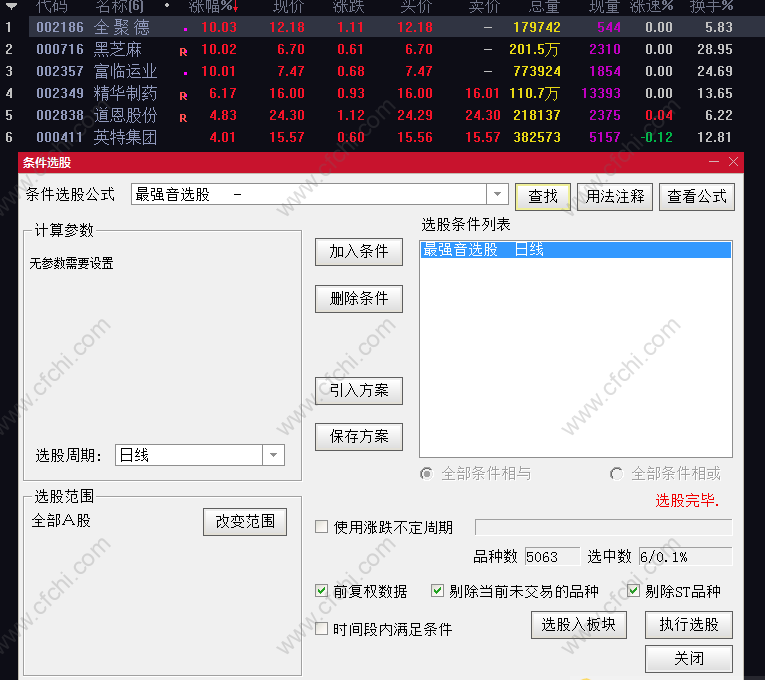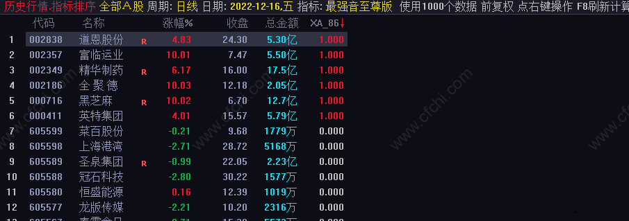 (通达信超牛强音至尊版套装主副图选股指标,副图可做早盘排序源码分享)