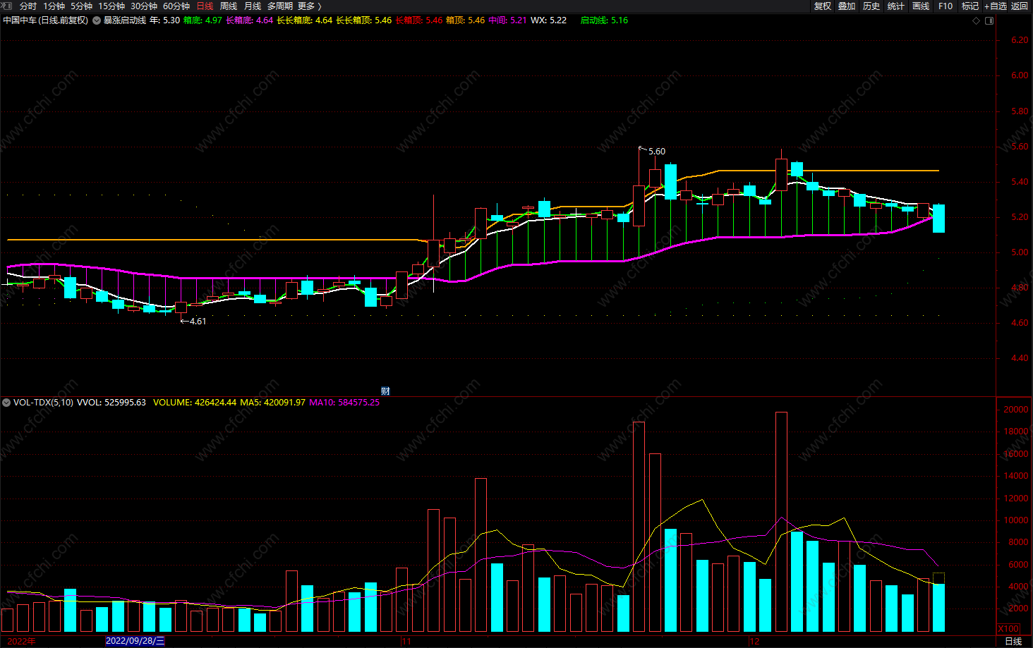 长长箱顶:HHV(MA((HIGH),6),120),POINTDOT,LINETHICK1;