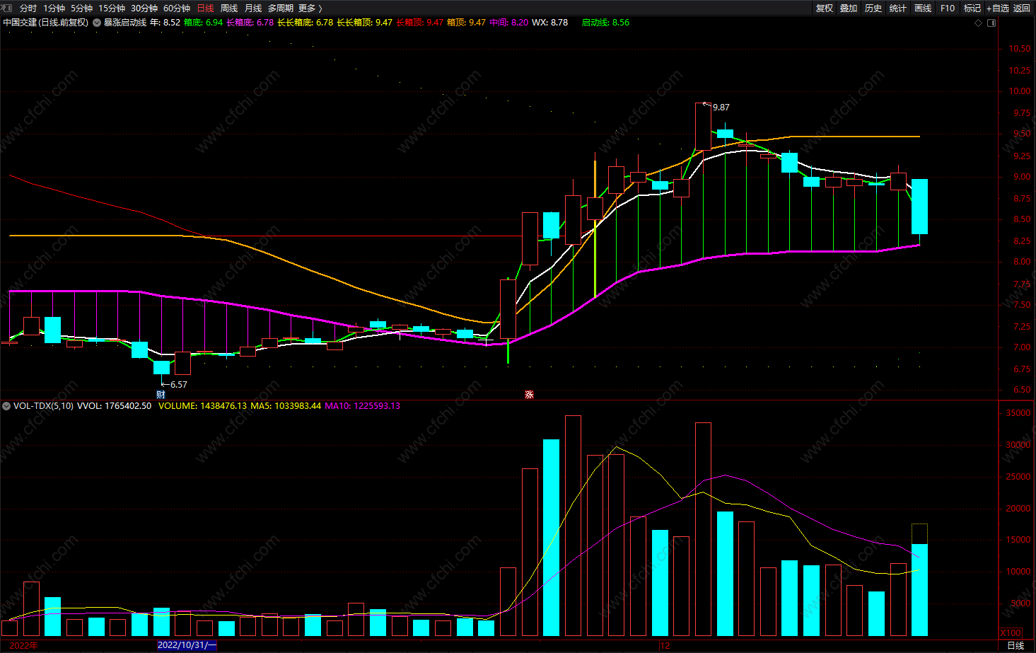 箱顶:HHV(MA((HIGH),6),30),COLOR00AAFF,LINETHICK2;