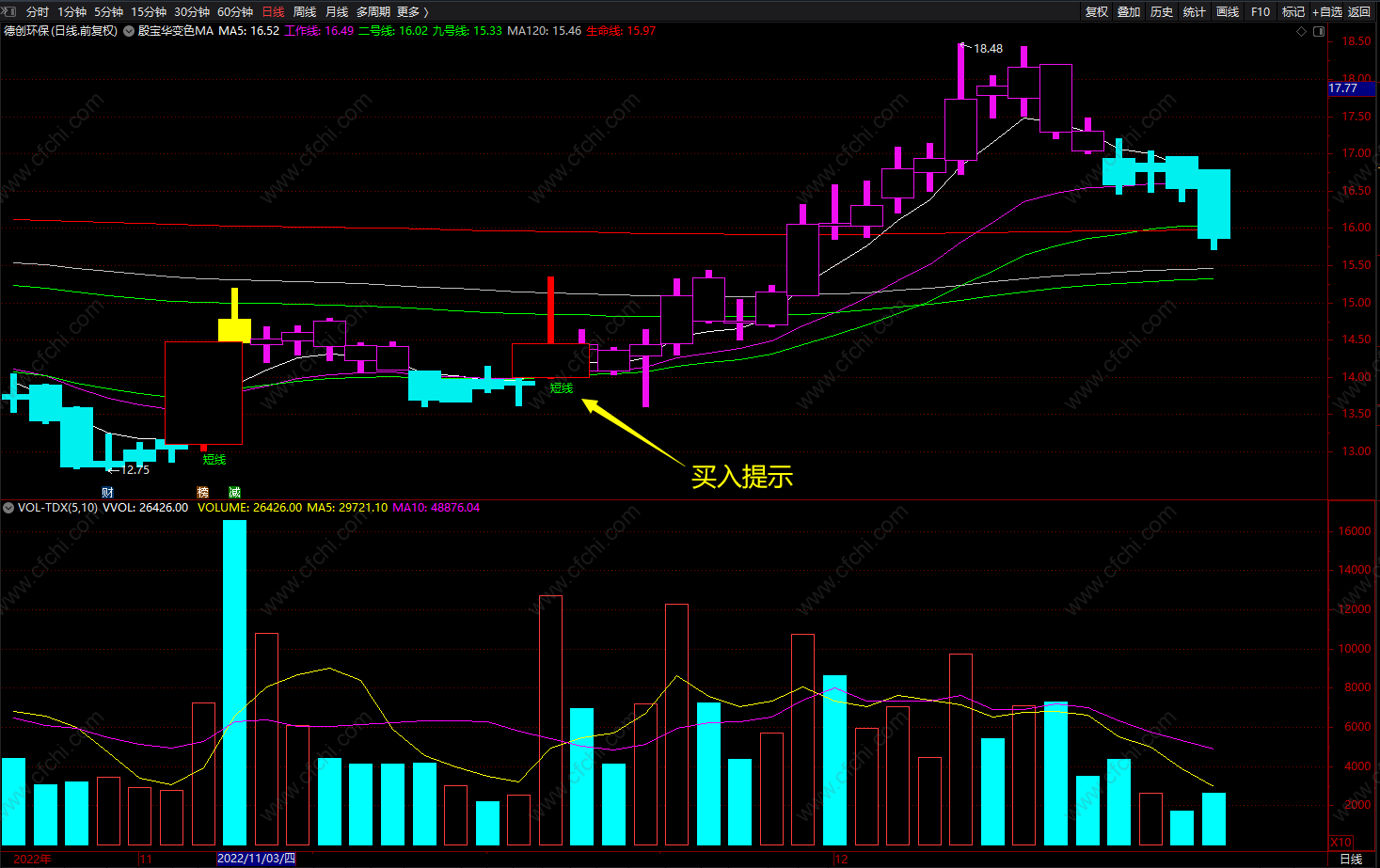 当白线穿越多空线且K线颜色变红色时,”短线“红色四方形 上涨提示,买入信号,当K线颜色变蓝色时,是预警信号,可以考虑减仓,当白线下穿多空线时,是卖出信号。