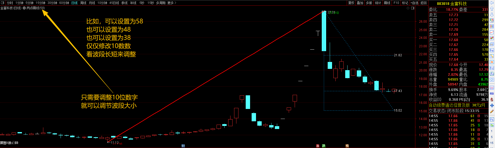 三,仅为两点画线,主要用于回调找支撑,或者反弹找压力