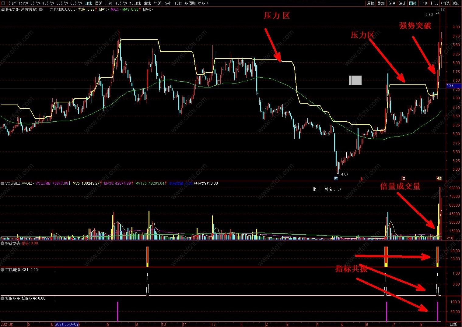 副图四合一,四指标共振成功率大,具休可参考下方图文注释,近期抓到三维,国光,德龙,